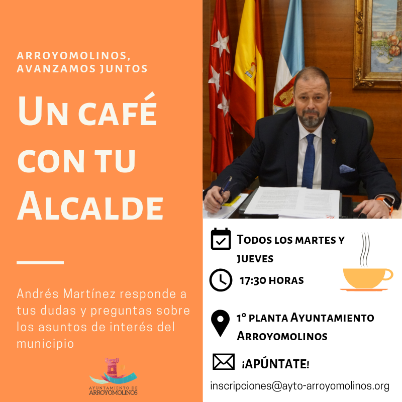 Con el objetivo y afán de conocer, más de cerca y de forma directa los intereses, dudas o preguntas de los arroyomolinenses; el Alcalde de Arroyomolinos, Andrés Martínez promueve la iniciativa “Un café con tu Alcalde”.
