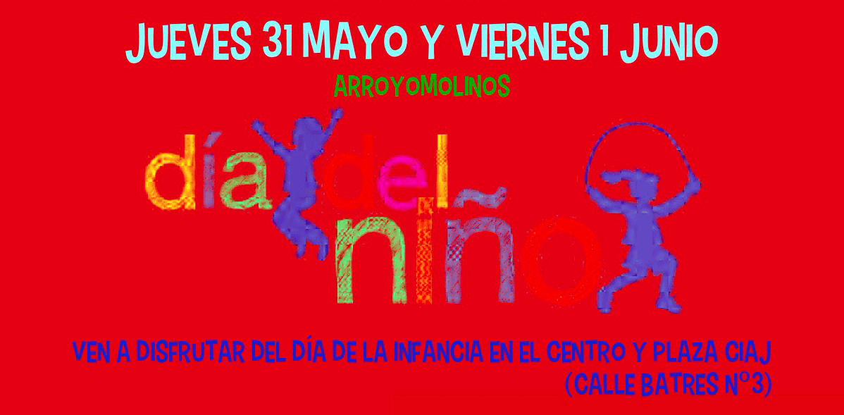 El 31 de mayo y el 1 de junio tendremos los “Días del Niño” en las Fiestas del Corpus de Arroyomolinos. Durante dichas jornadas los más pequeños de la casa podrán disfrutar en la Plaza Mayor de Arroyomolinos de diversas iniciativas.