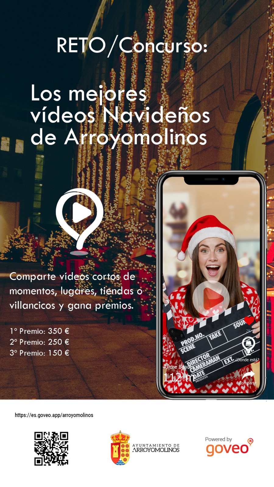 Los trabajos audiovisuales, que deberán ser enviados a través de es.goveo.app/arroyomolinos hasta el 8 de enero, estarán geolocalizados por la propia aplicación con el claro propósito de que los contenidos estén relacionados con la propia Navidad y el interés comercial de Arroyomolinos, de acuerdo con las instrucciones de la Concejalía de Desarrollo Local, encargada de impulsar esta iniciativa.