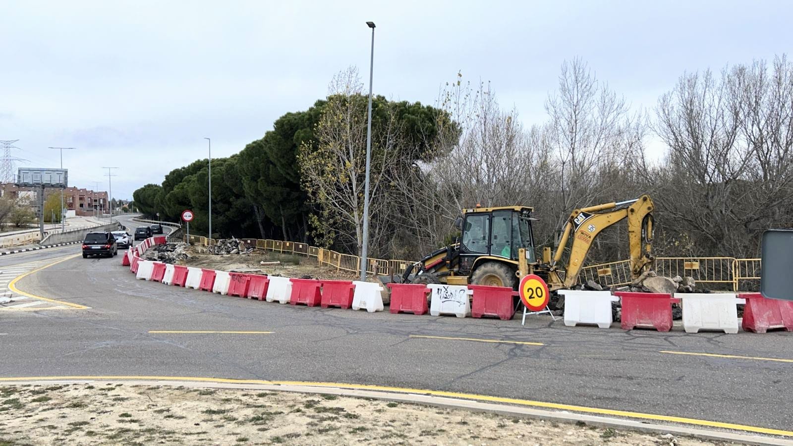 - Las obras que se ejecutan en la carretera M-413 para unir a pie los dos barrios contemplan la creación de un paso de peatones cuyo uso estará regulado por un semáforo de preaviso y por otro tradicional