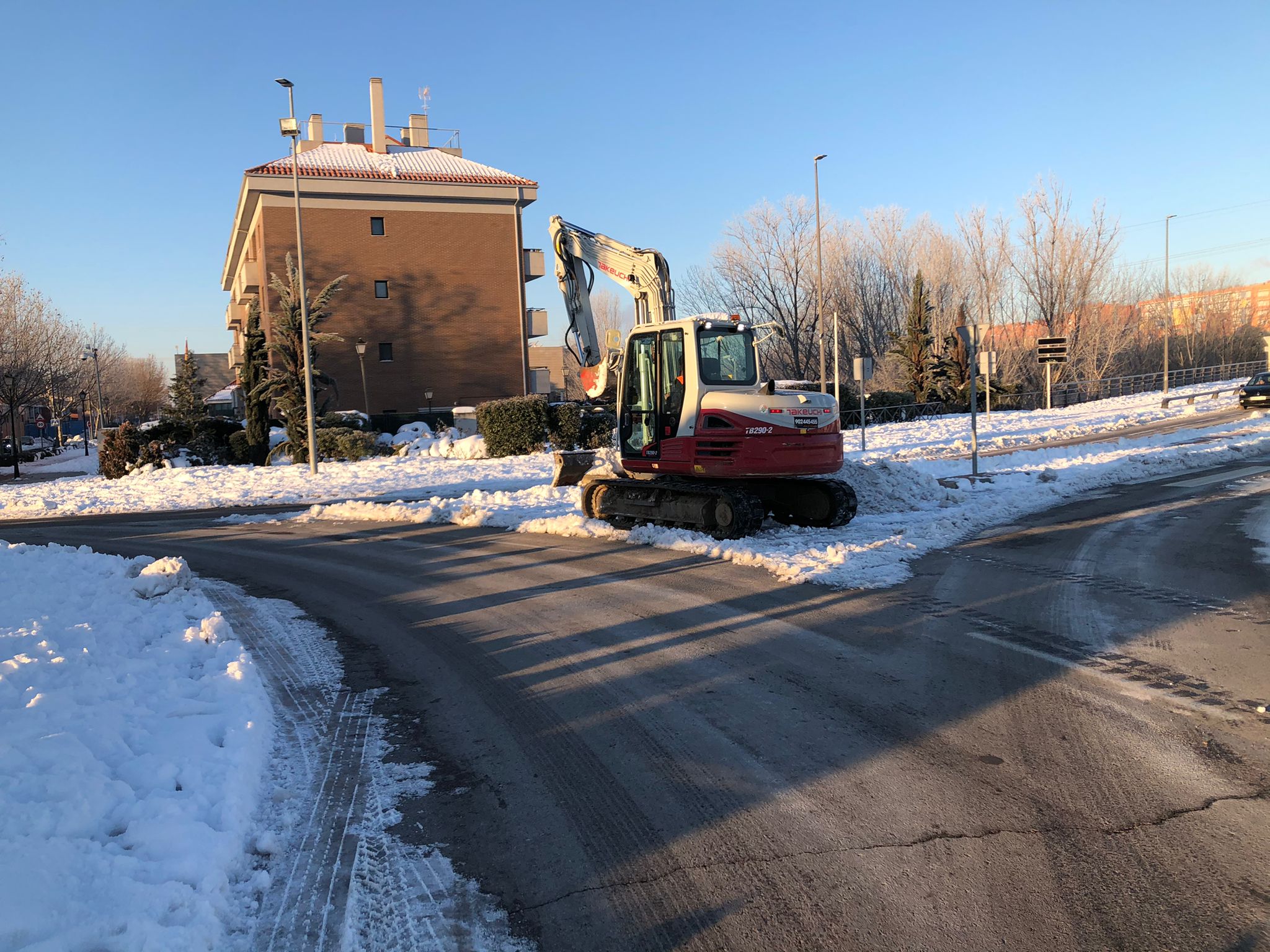 Quinto día de trabajos para ir despejando calles de restos de nieve y de las placas de hielo en Arroyomolinos, que han permitido que, en este momento, más del 95% de las calles de este municipio ya sean transitables. En total, el municipio cuenta con 94 kilómetros de viales y se ha recuperado la movilidad en 90 de ellos.
