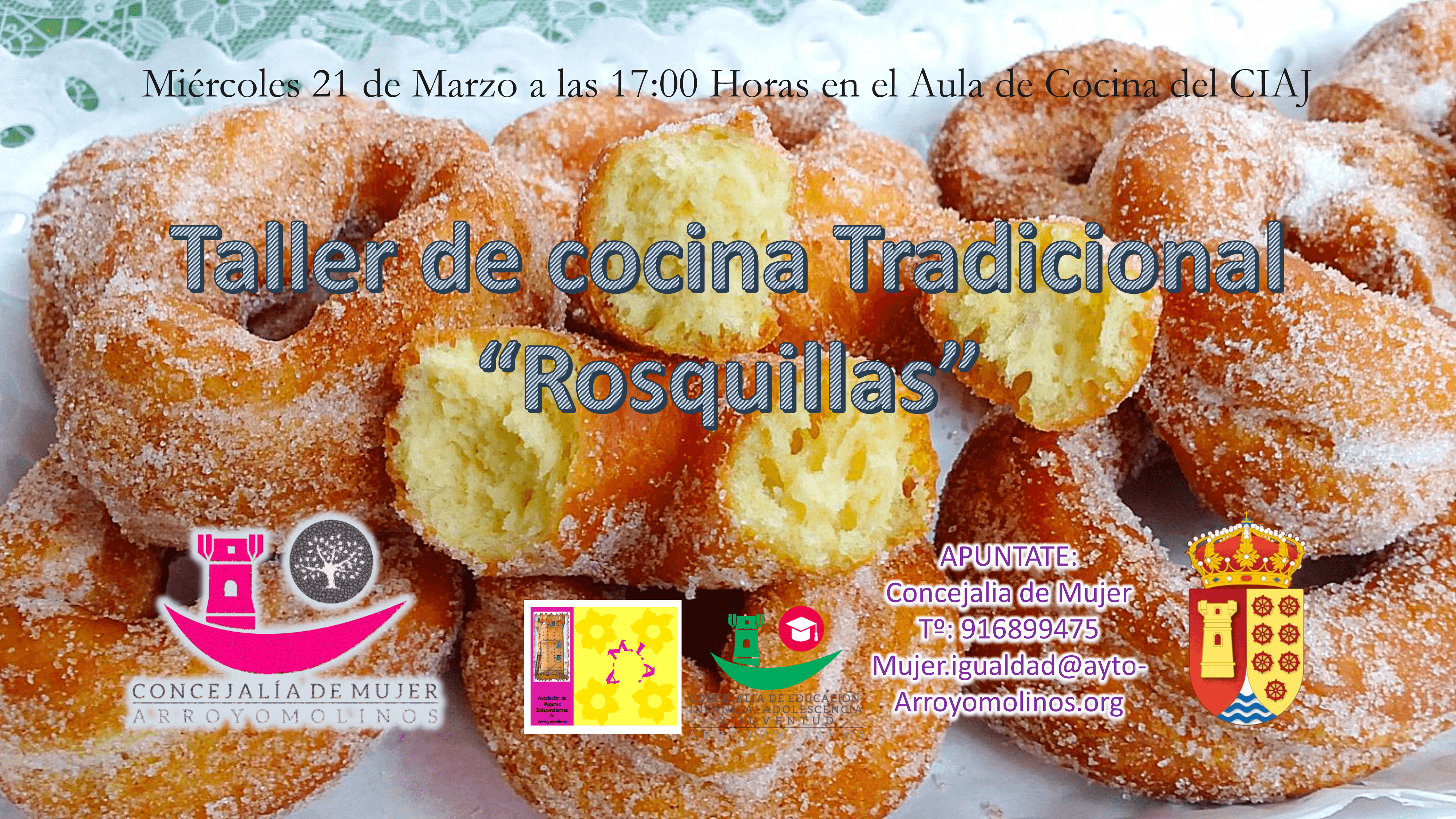 El miércoles 21 de marzo tendremos un Taller de Cocina Tradicional “rosquillas” desde las 17:00 horas. Nos podemos inscribir en la Concejalía de Mujer en el teléfono 91 6899475 y en el correo electrónico igualdad@ayto-arroyomolinos.org