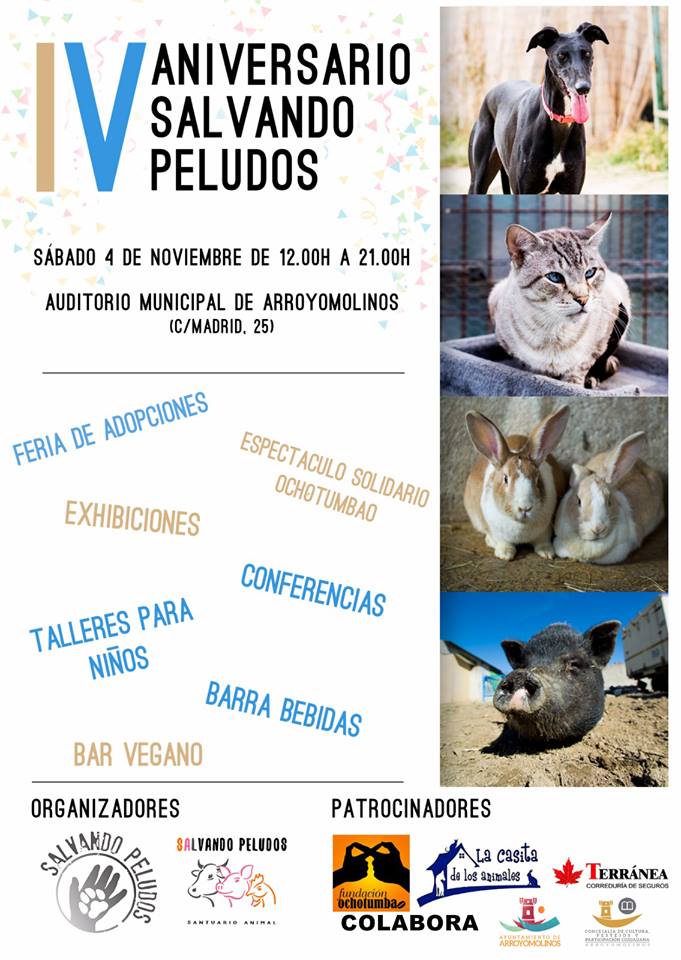Este sábado desde las 12:00 de la mañana en Arroyomolinos conmemoramos el IV Aniversario de “Salvando Peludos” en el Auditorium Municipal.