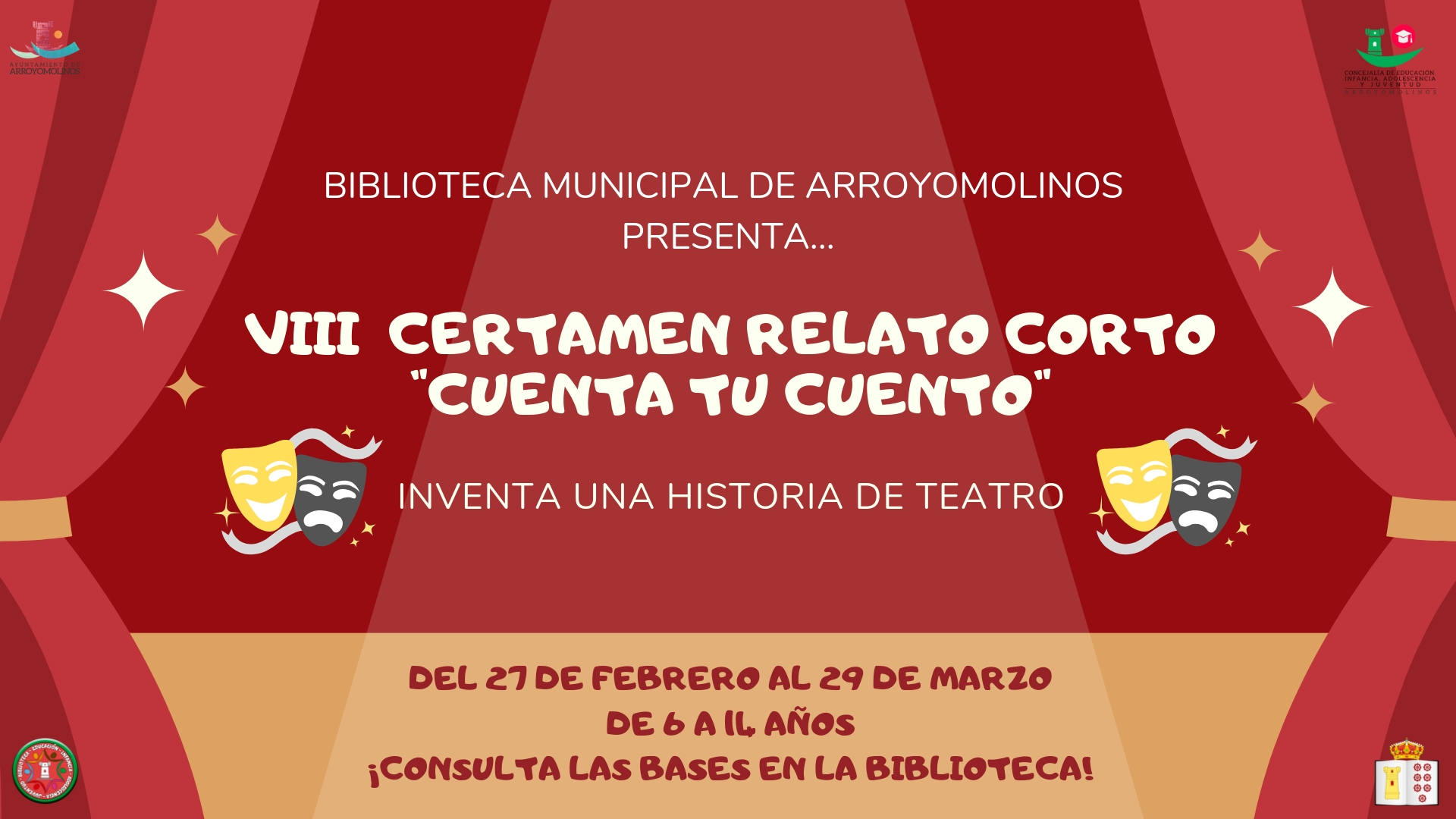 Un año más Arroyomolinos, a través de la Concejalía de Educación y la Biblioteca Municipal de Arroyomolinos, pone en marcha el Certamen de Relato Corto “Cuenta tu Cuento”. Un certamen que llega a su VIII edición y que, en esta ocasión, nos anima a inventar una historia de teatro.