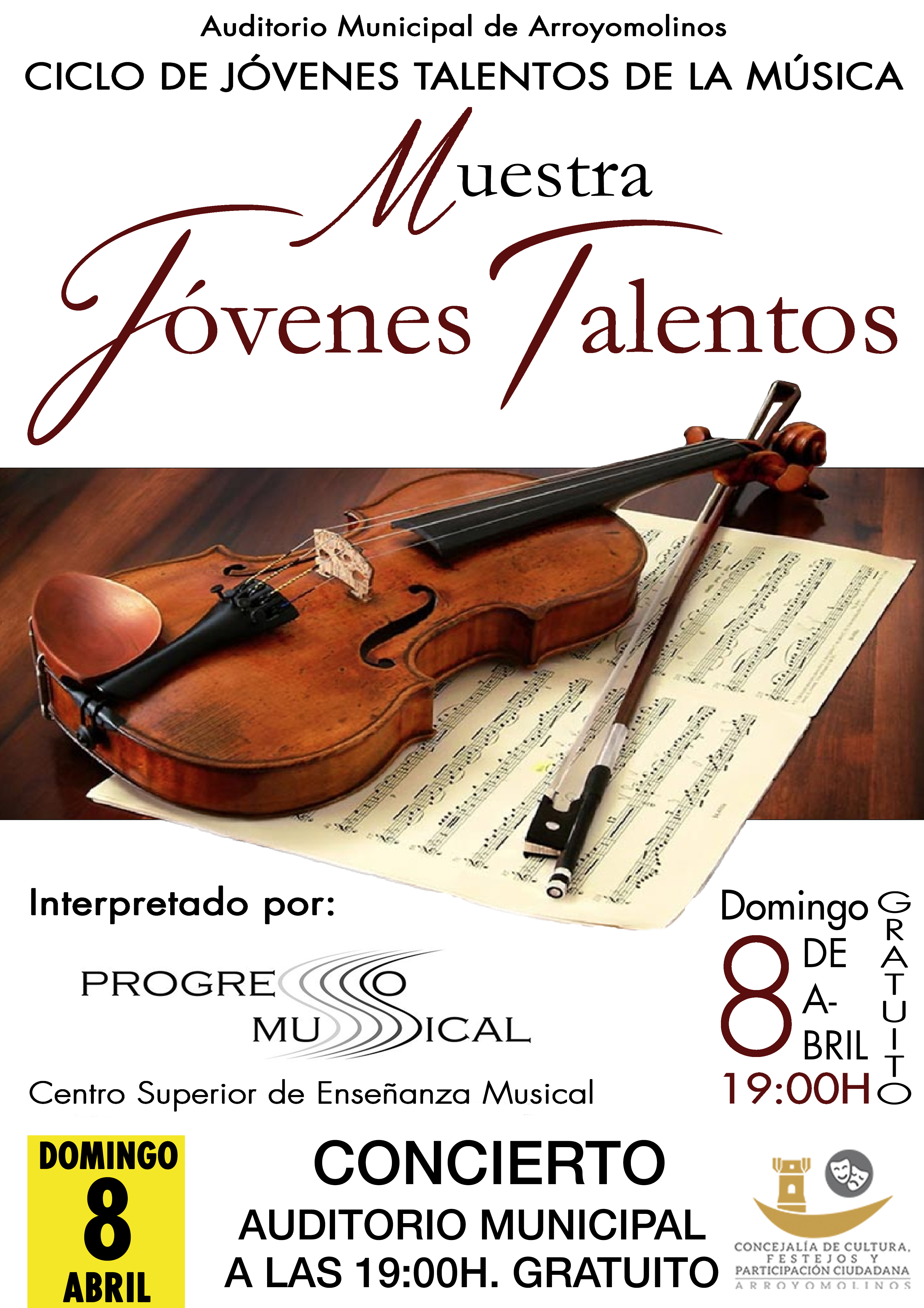 El Auditórium de Arroyomolinos acoge, de nuevo, una cita musical de gran altura. En esta ocasión serán los más jóvenes quienes se suban al escenario del Auditórium con la “Muestra Jóvenes Talentos”. Una cita de gran nivel musical con el “Ciclo de Jóvenes Talentos de la Música” del Centro Superior de Enseñanza Musical Progreso Musical.