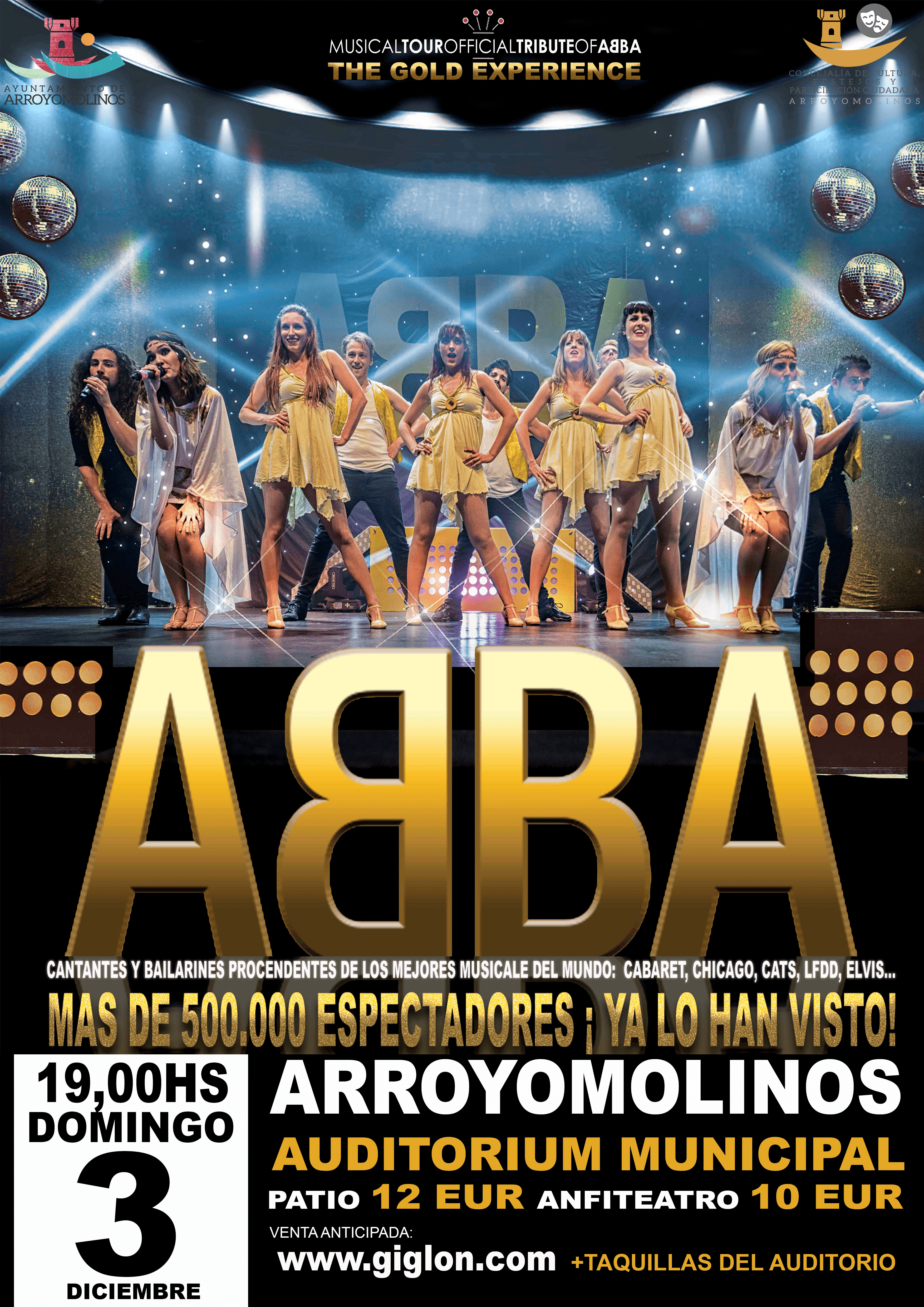 Casi dos horas de espectáculo con el musical "ABBA THE GOLD EXPERIENCE", es lo que viviremos en Arroyomolinos este próximo domingo 3 de diciembre. Una cita con la historia y la música de una de las bandas más conocidas y reconocidas.
