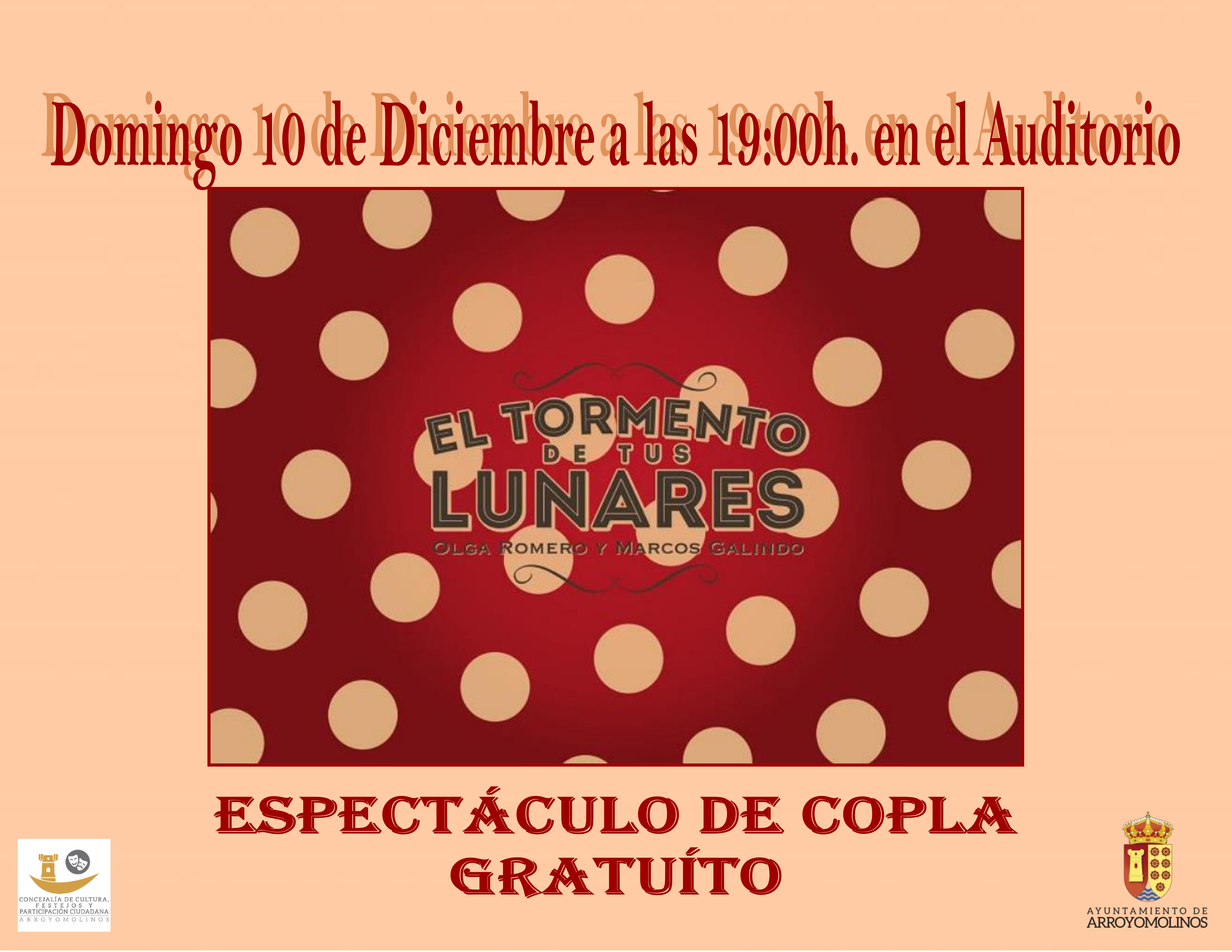 Este próximo domingo 10 de diciembre desde las 19:00 de la tarde en el Auditórium de Arroyomolinos disfrutaremos de “El Tormento de tus lunares”