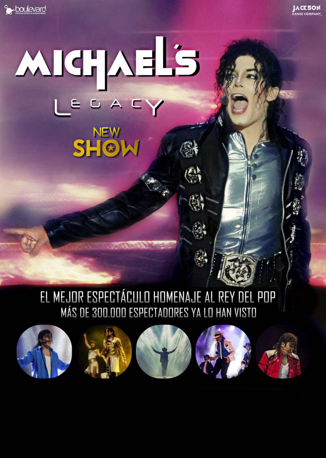 Ahora, llega a Arroyomolinos Michael´s Legacy” el primer homenaje a Michael Jackson que ofrece el concepto de espectáculo que tenía el rey del pop en sus giras. Avalado por el Club de Fans de Michael Jackson en España como el mejor espectáculo musical sobre El Rey del Pop en la actualidad, es un homenaje a Michael Jackson, creado por la compañía Jackson Dance Company.