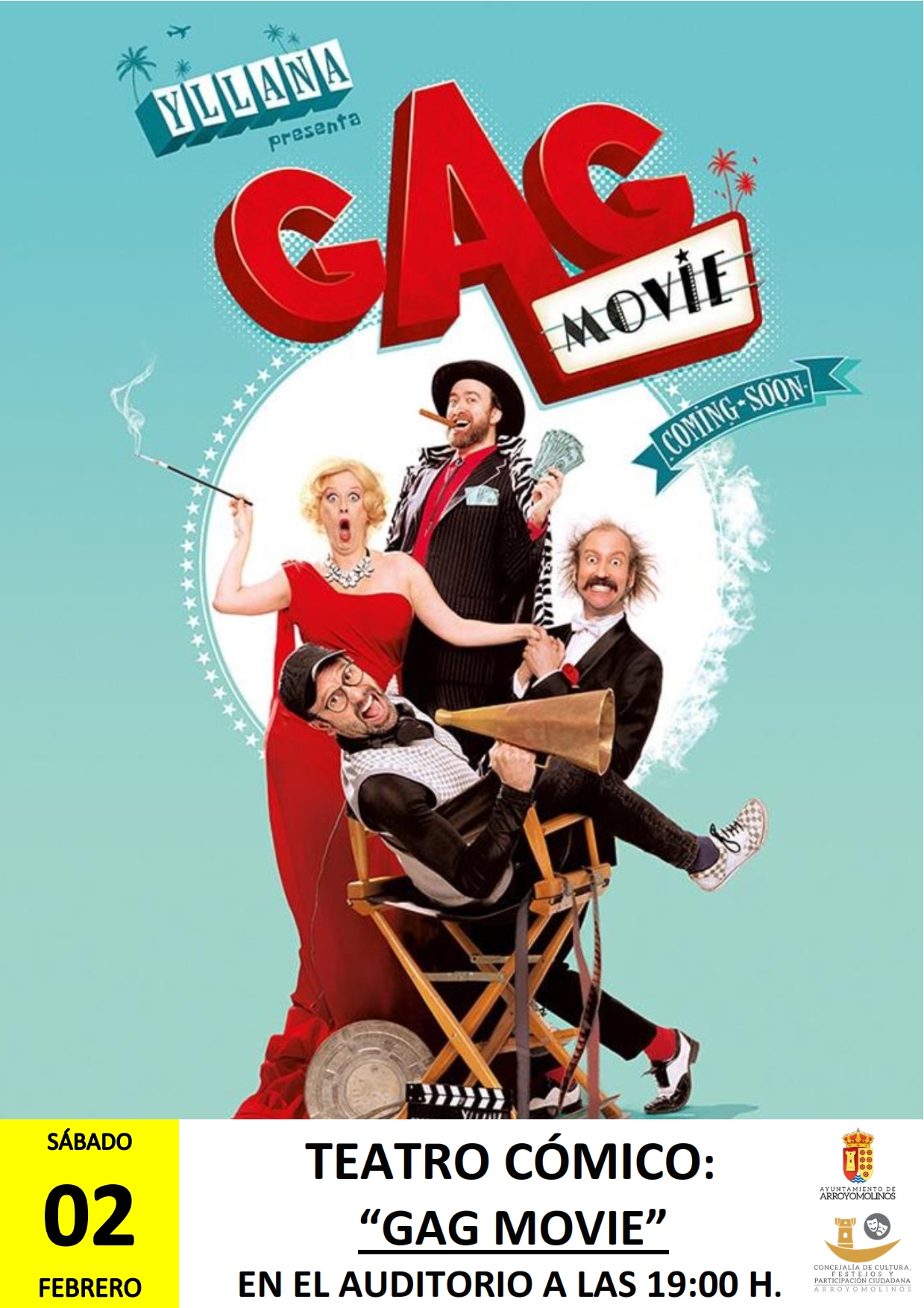 La compañía Yllana trae hasta Arroyomolinos su gran homenaje al mundo del cine. Sin duda el séptimo arte ha sido siempre una fuente de inspiración para los componentes de Yllana. Ahora estos genios del humor y el teatro han querido mostrar su agradecimiento al cine con un homenaje en forma de disparatado rodaje cinematográfico EN "Gag Movie".