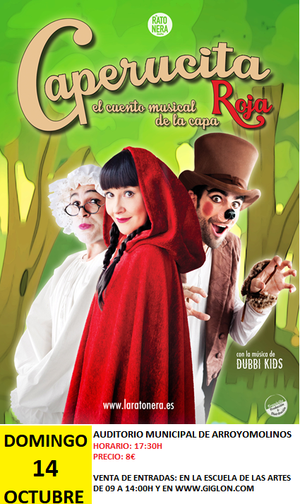 El 14 de octubre desde las 17:30 Caperucita Roja en Arroyomolinos. Venta de entradas en el Auditorio de 9:00 a 14:00 horas y en giglon.com