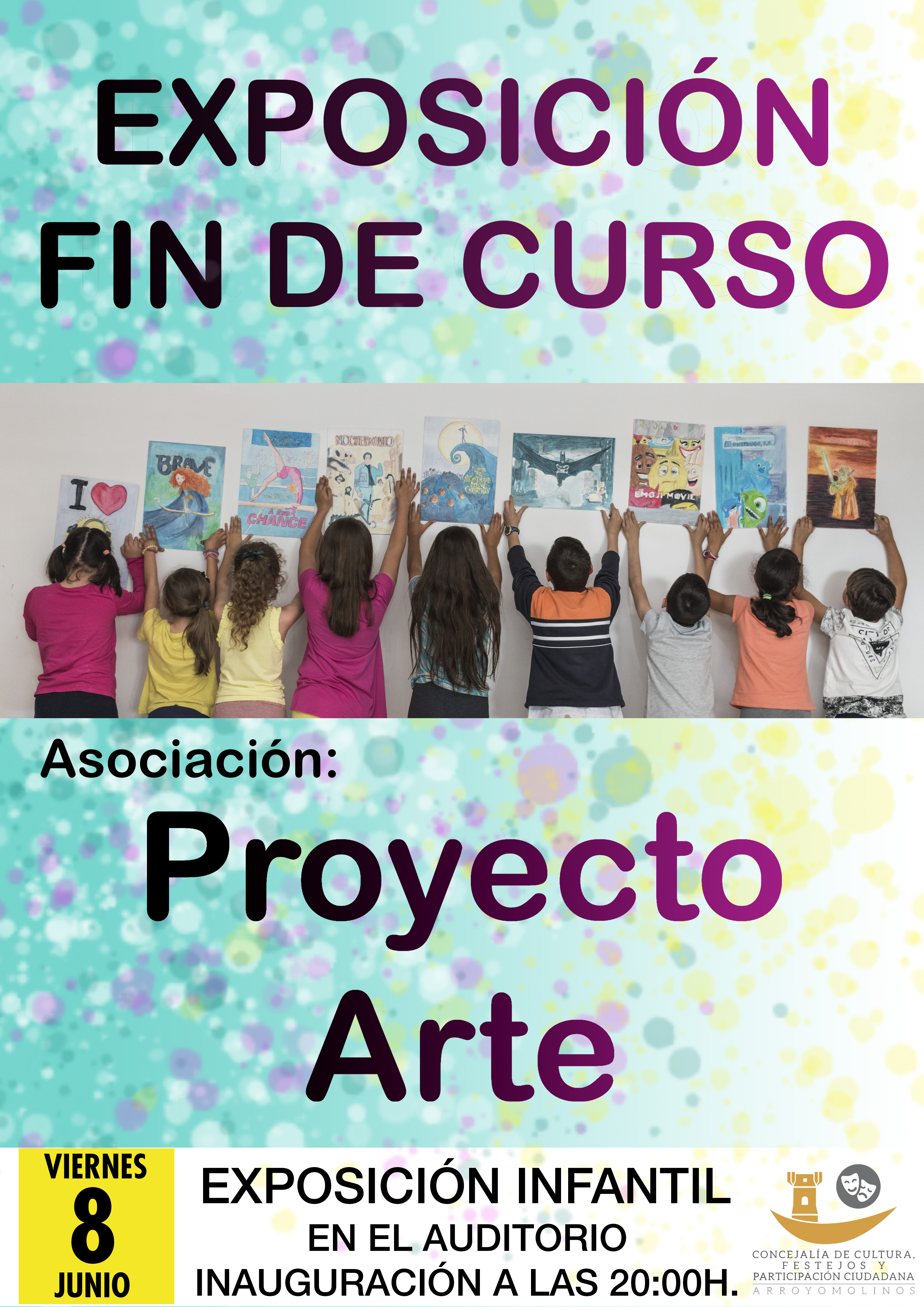 El Auditórium de Arroyomolinos expondrá y dará visibilidad a los más jóvenes del municipio. Todo ellos se forman en disciplinas artísticas con la Asociación Proyecto Arte en alguna de las tres clases que imparten para los más jóvenes. Durante las últimas semanas han elegido su película favorita y han diseñado y pintado el cartel de esta.