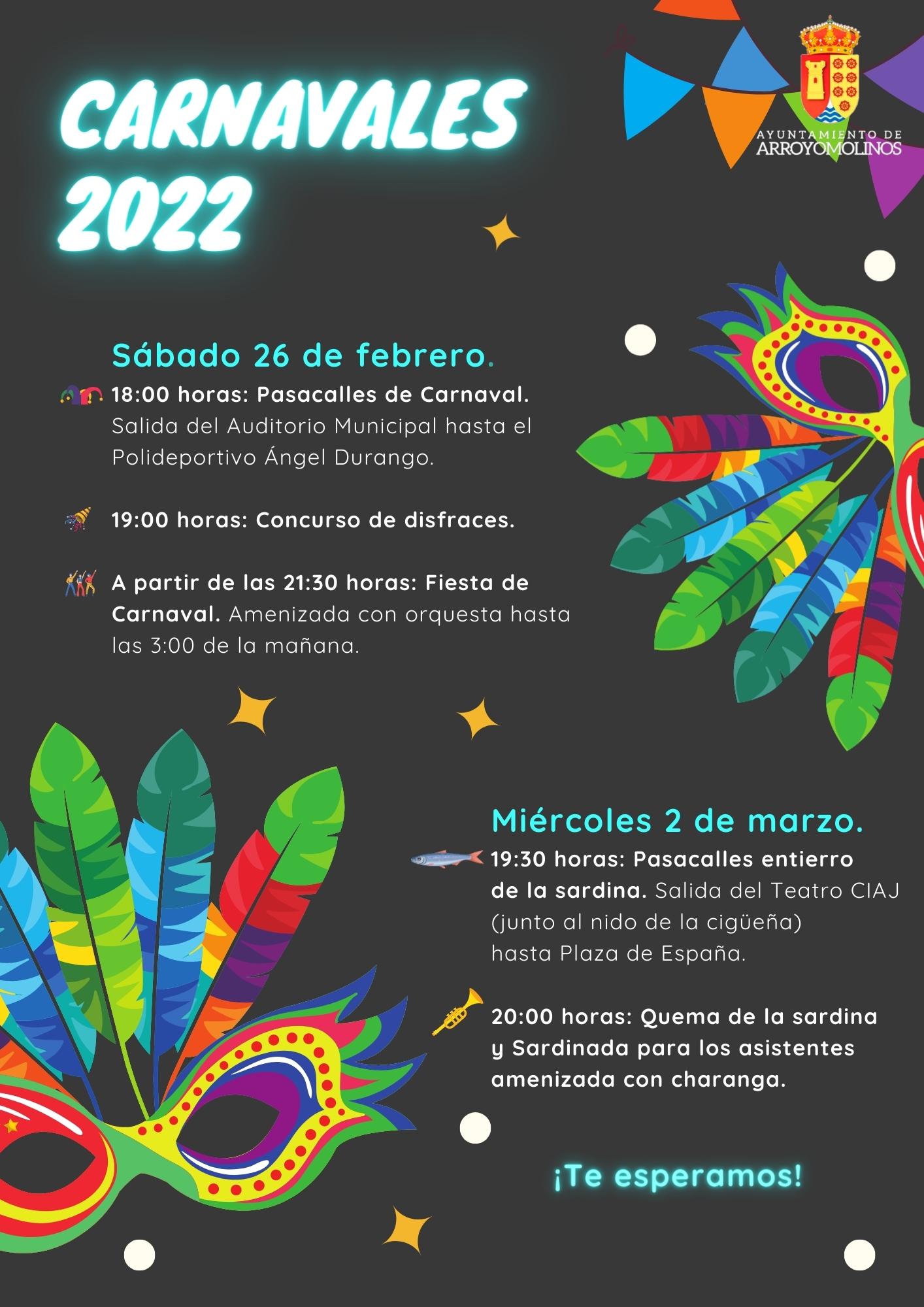 El Ayuntamiento de Arroyomolinos con el fin de promover la participación vecinal en los Carnavales, propone las siguientes bases para el Concurso de Disfraces Carnaval 2022. Aquí en formato PDF