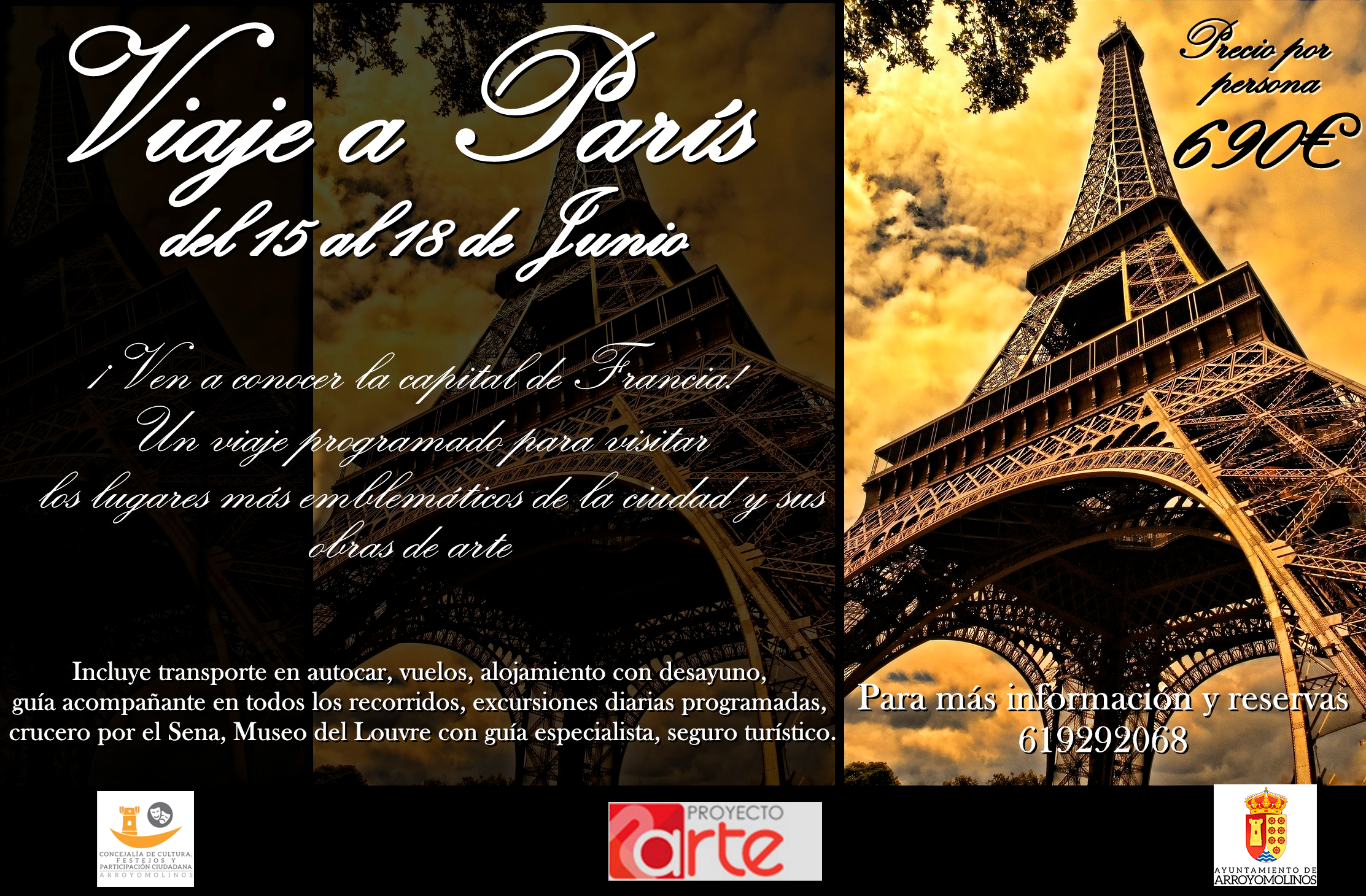 Los interesados se deben informar y reservar plaza en el número de contacto de la Asociación Proyecto Arte de Arroyomolinos que es el 619 292068. Una oportunidad de conocer Paris y el arte y la cultura que encierra.