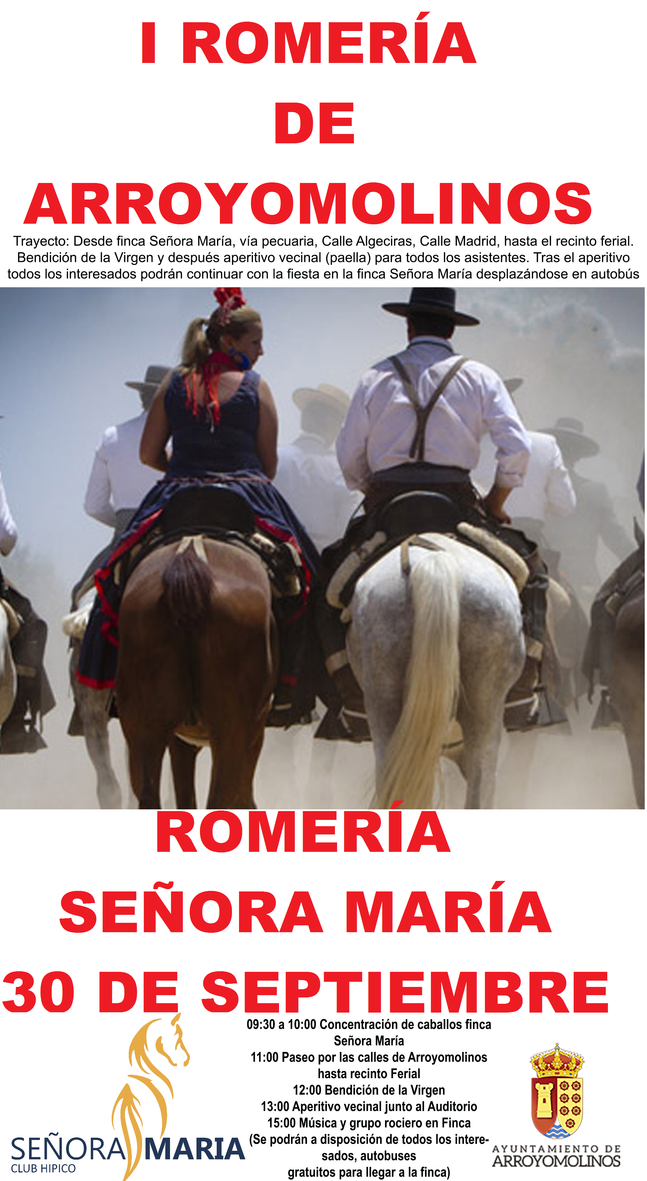 La cita comenzará a las 9:30 de la mañana con la concentración de caballos Señora María. A las 13:00 tendremos aperitivo vecinal frente al Auditorium y a las 15:00 la música será la protagonista.
