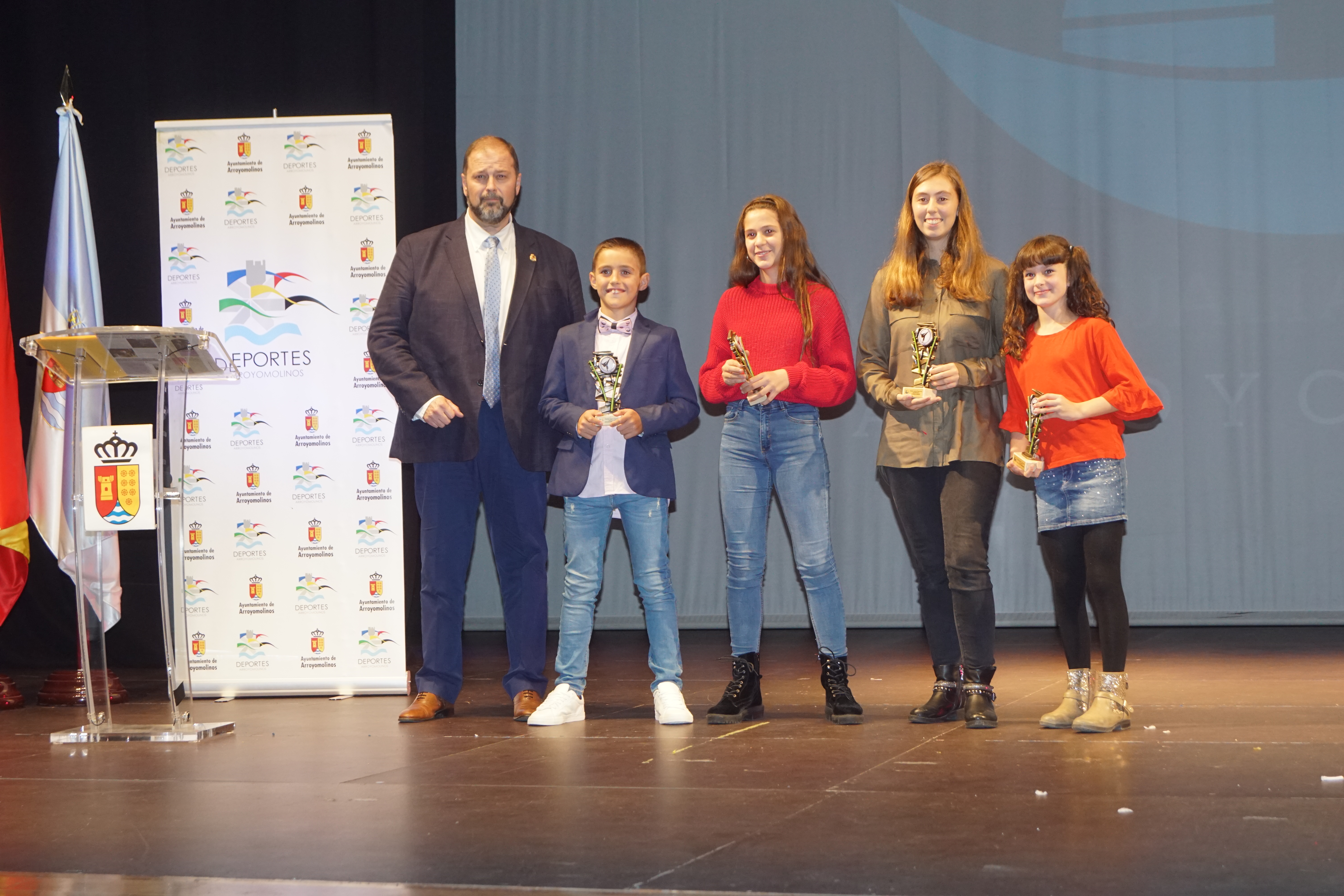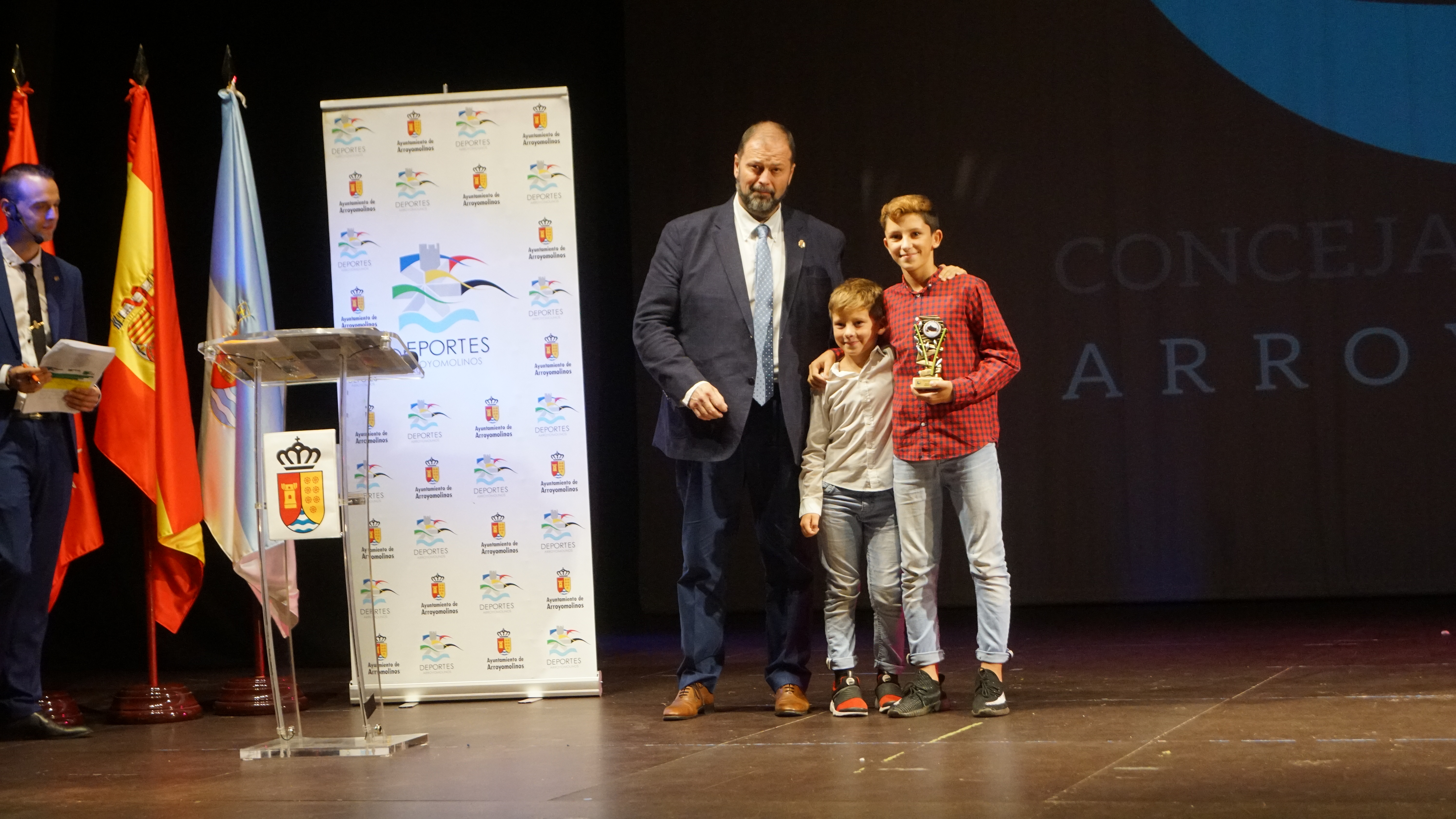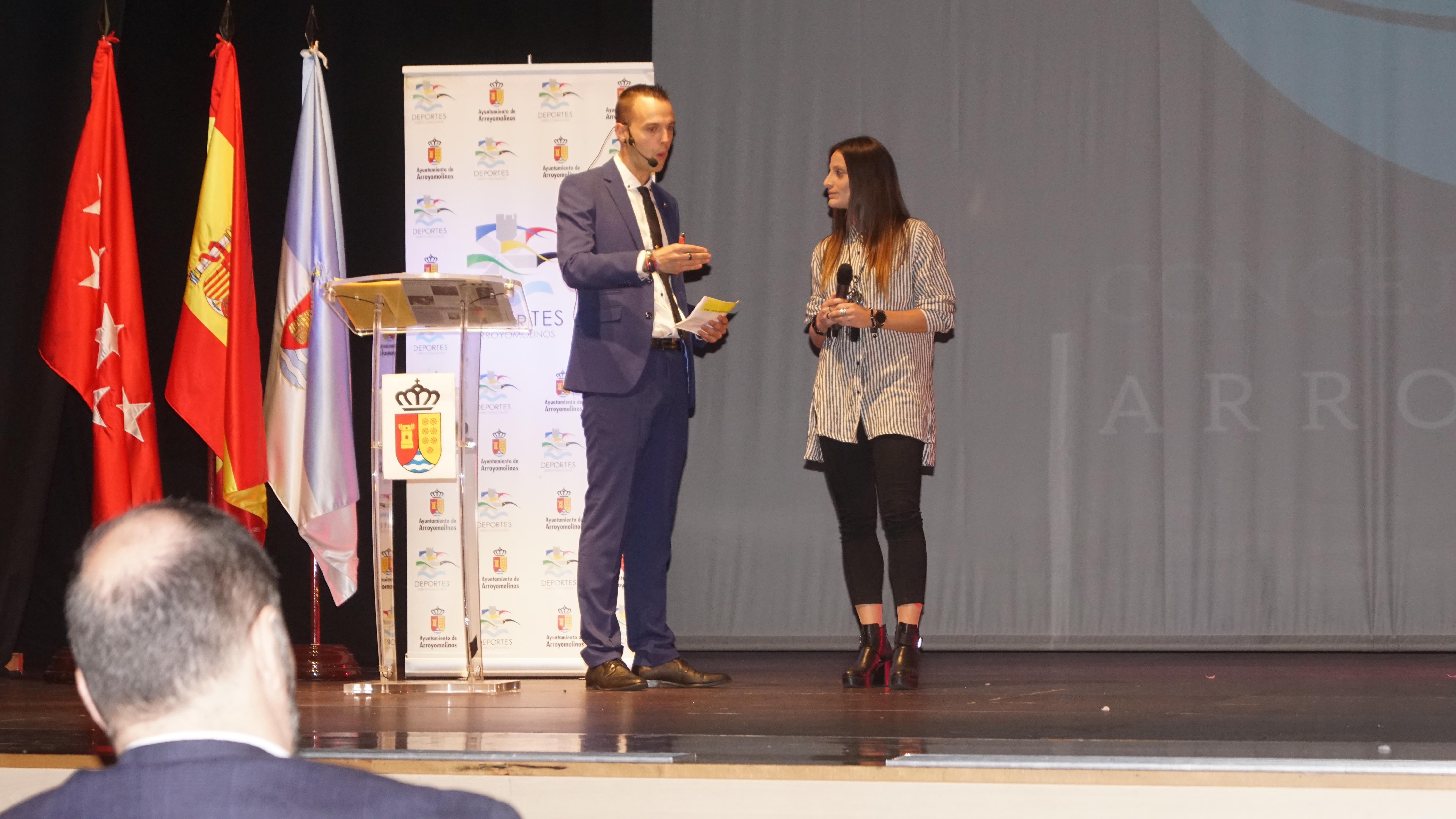 El Auditorio de Arroyomolinos se lleno para acoger la gran fiesta del deporte de la ciudad. A la entrega de los Premios del Deporte 2018 de Arroyomolinos acudieron el Alcalde de Arroyomolinos, Andrés Martínez, el Concejal de Deportes, Miguel Ángel Perdiguero y gran parte de los miembros de la Corporación Municipal, representantes de la Federación de Deporte de Invierno de Madrid, la jugadora internacional con España del Atlético de Madrid Esther González y una nutrida representación de los clubes deportivos de Arroyomolinos