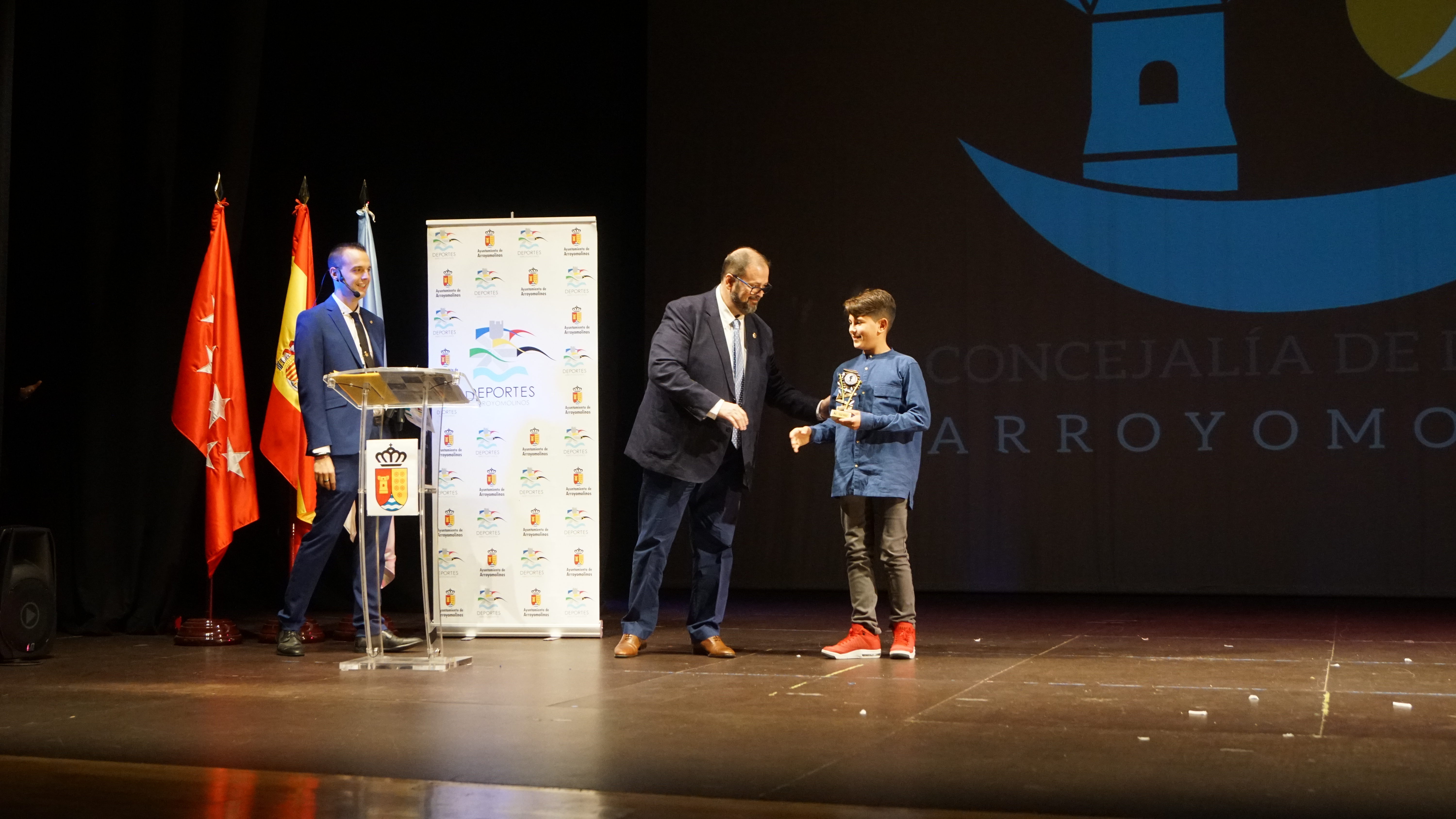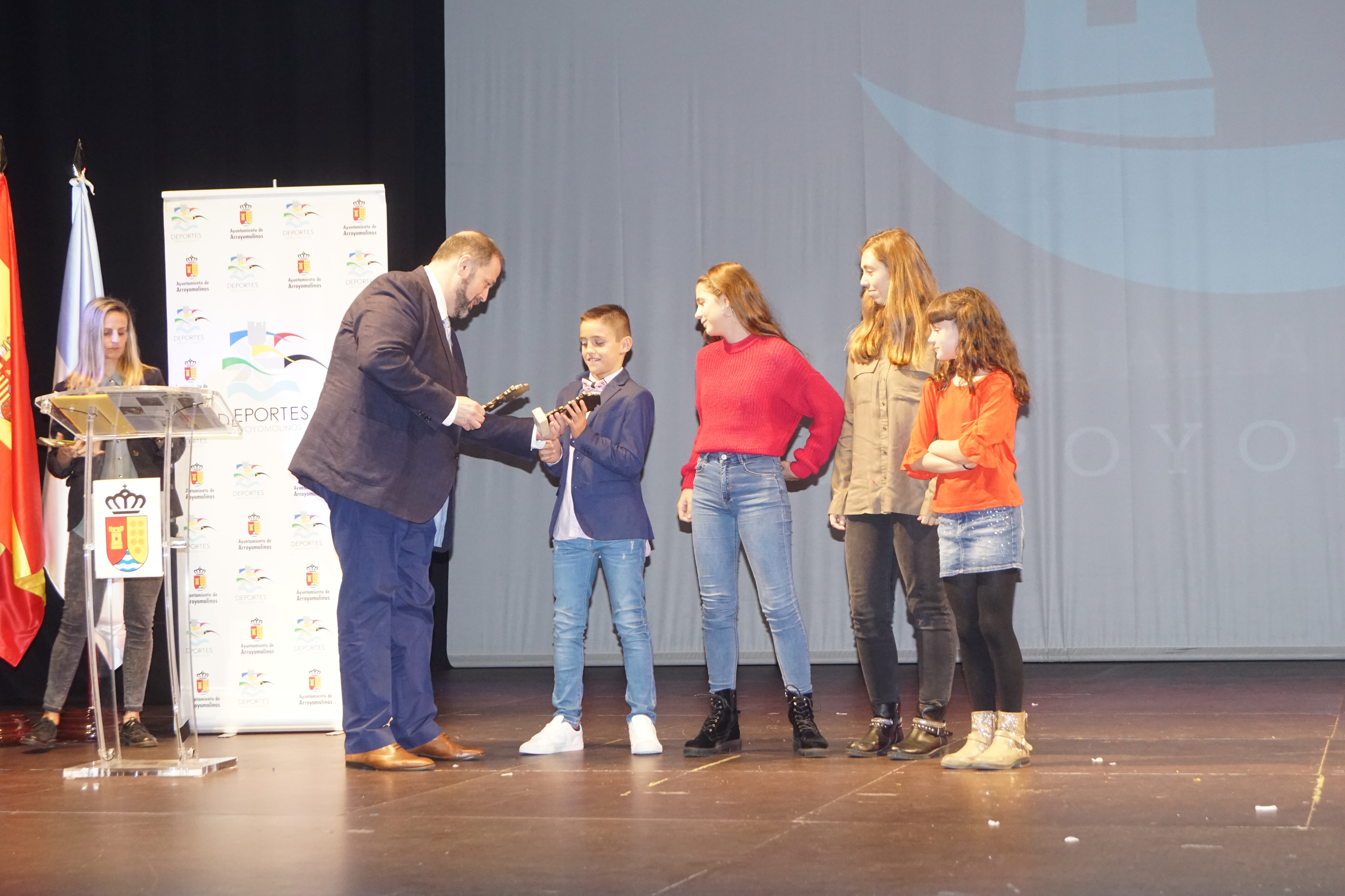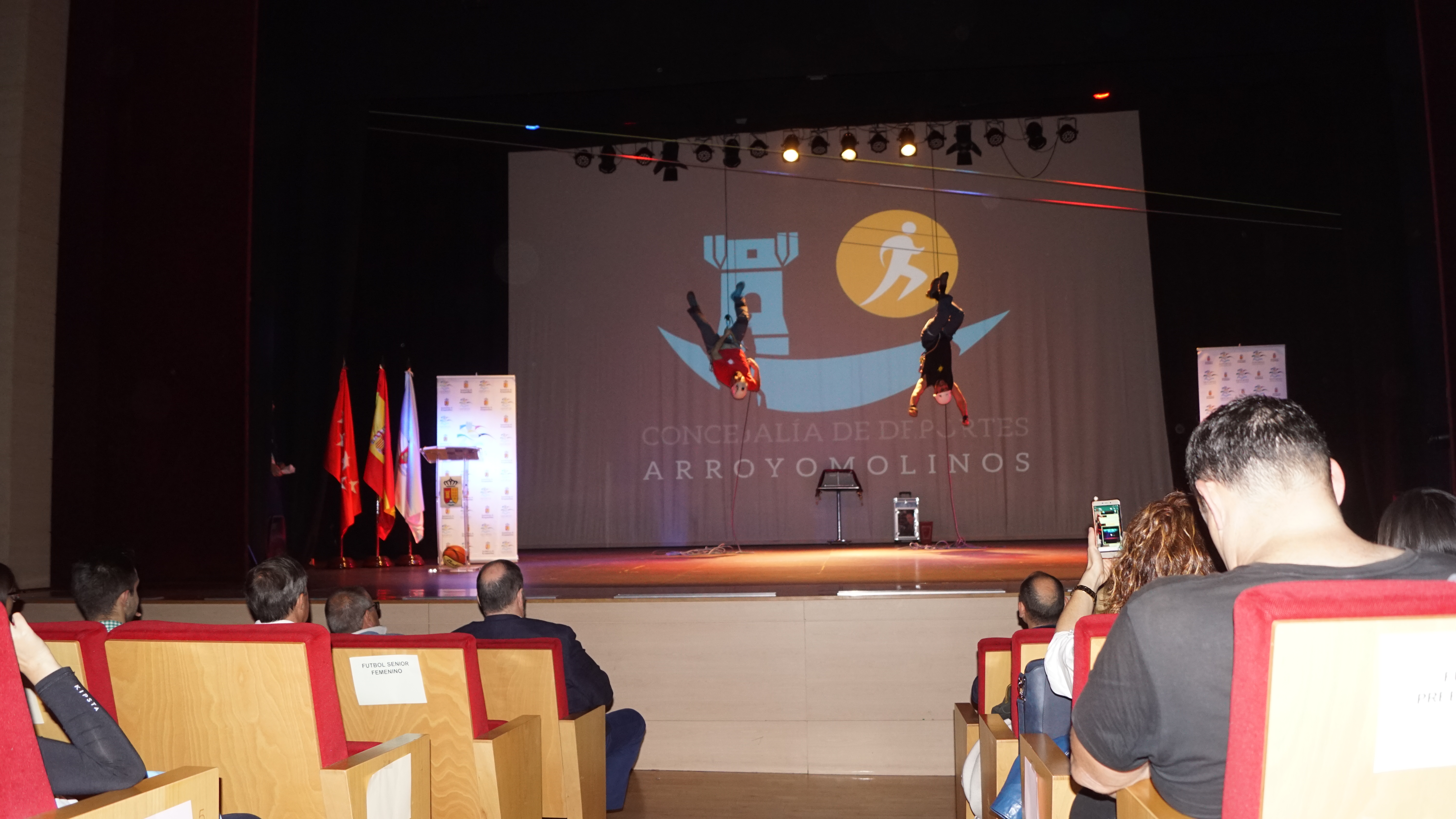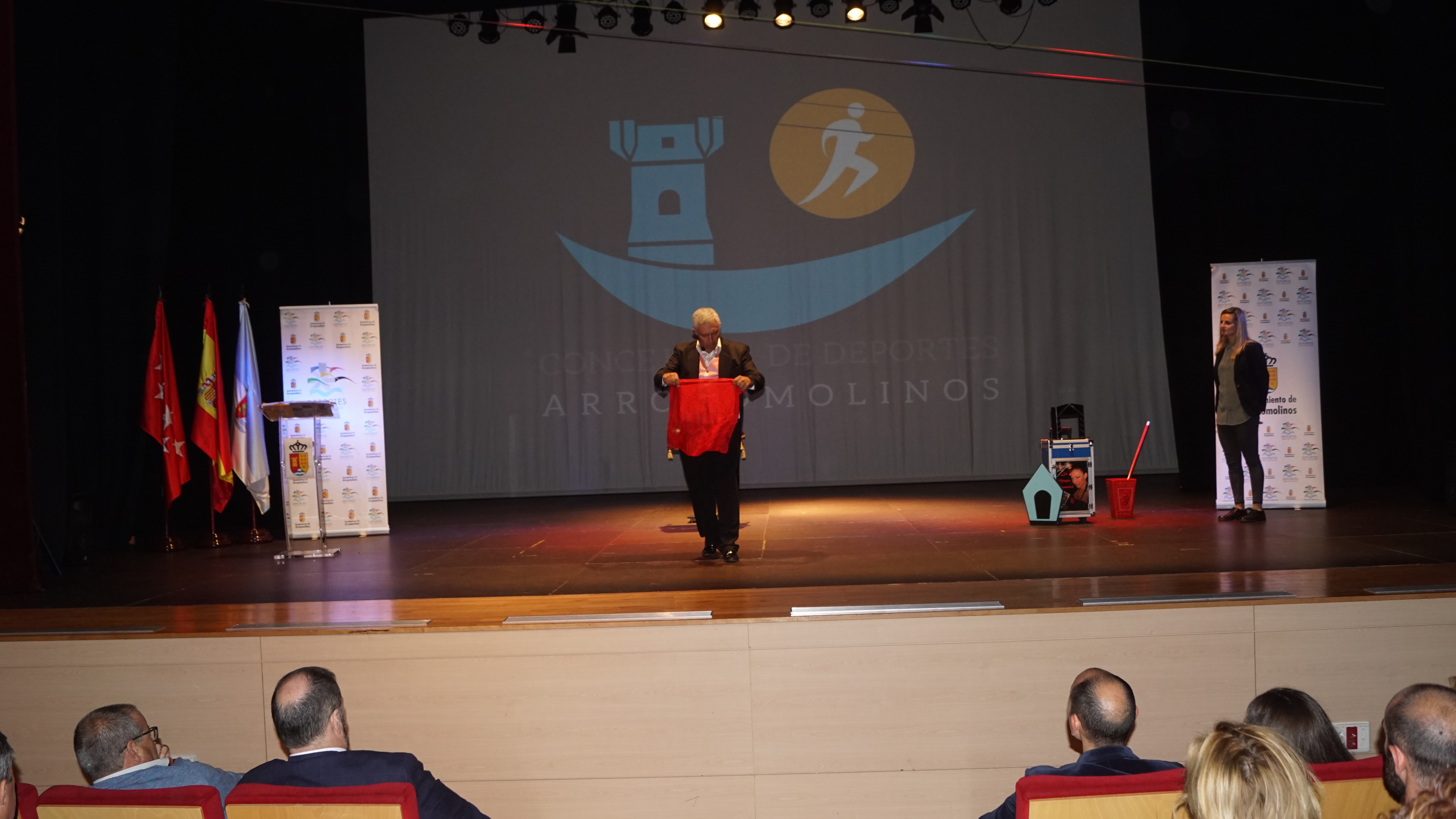 El Auditorio de Arroyomolinos se lleno para acoger la gran fiesta del deporte de la ciudad. A la entrega de los Premios del Deporte 2018 de Arroyomolinos acudieron el Alcalde de Arroyomolinos, Andrés Martínez, el Concejal de Deportes, Miguel Ángel Perdiguero y gran parte de los miembros de la Corporación Municipal, representantes de la Federación de Deporte de Invierno de Madrid, la jugadora internacional con España del Atlético de Madrid Esther González y una nutrida representación de los clubes deportivos de Arroyomolinos