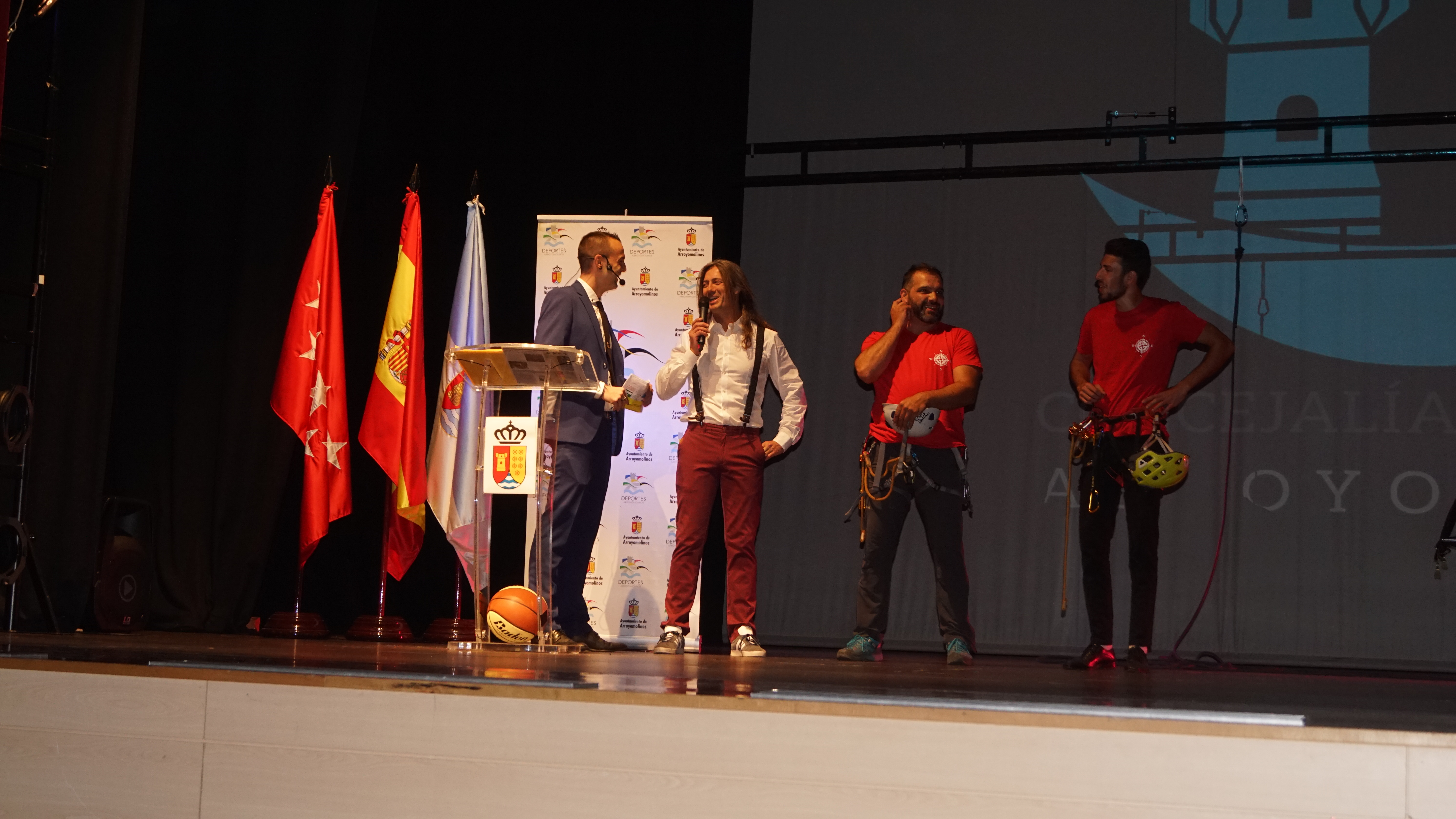 La ceremonia fue amenizada por el mago Karabas y sirvió de presentación para los nuevos equipos Senior de fútbol 11 en categoría masculina y femenina y el club senior mixto de voleibol. Además la ceremonia contó con las exhibiciones de Hapkido, Wing Chun y Baile Deportivo y la presentación de las nuevas secciones de escuelas deportivas de Rugby, BTT, Triatlon infantil y Wing Chun. En el inició de la gala los protagonistas fueron los miembros del Club de Escalada de Arroyomolinos Vivac Mountain que recorrieron el escenario con una tirolina y un descenso de rapel, llevando el asombro y los aplausos al público.