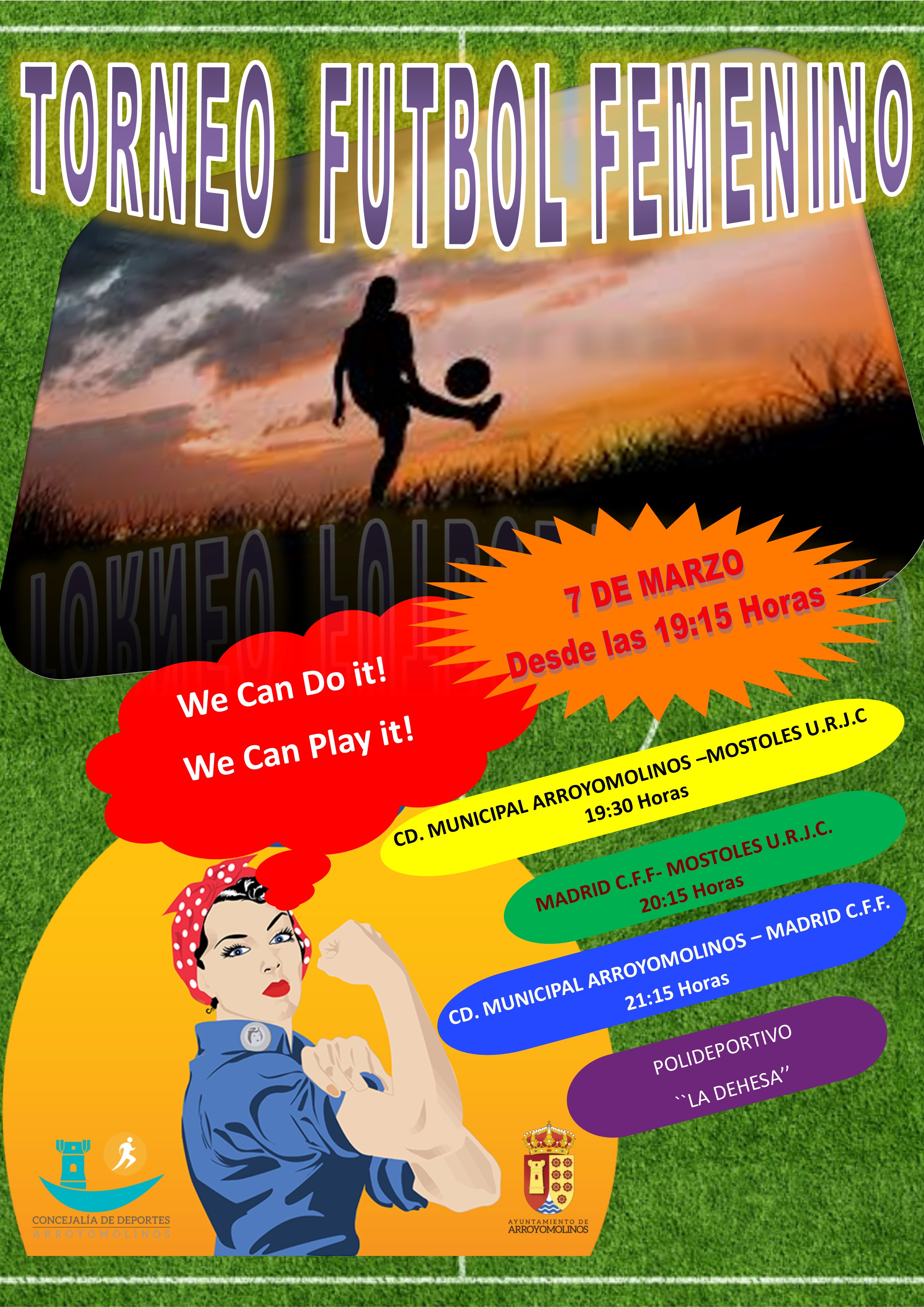 En el Torneo participarán el CD Municipal Arroyomolinos, el Madrid C.F.F y el Móstoles URJC. El torneo se disputará en formato triangular con partidos de 40 minutos desde las 19:30 horas. Todos los arroyomolinenses están invitados a acudir al torneo, disfrutar del mejor fútbol y apoyar la igualdad en el deporte.