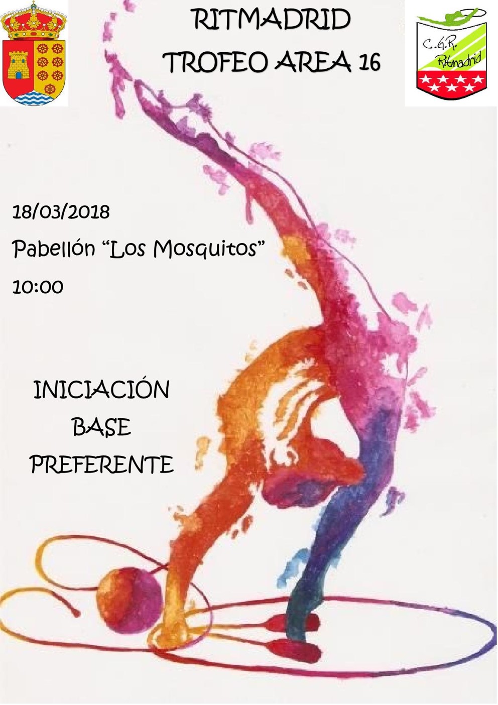La cita será el domingo 18 de marzo en el Polideportivo “Los Mosquitos” se celebrará el Campeonato de Gimnasia Rítmica fase Área 16 en los niveles de iniciación, base y preferente.