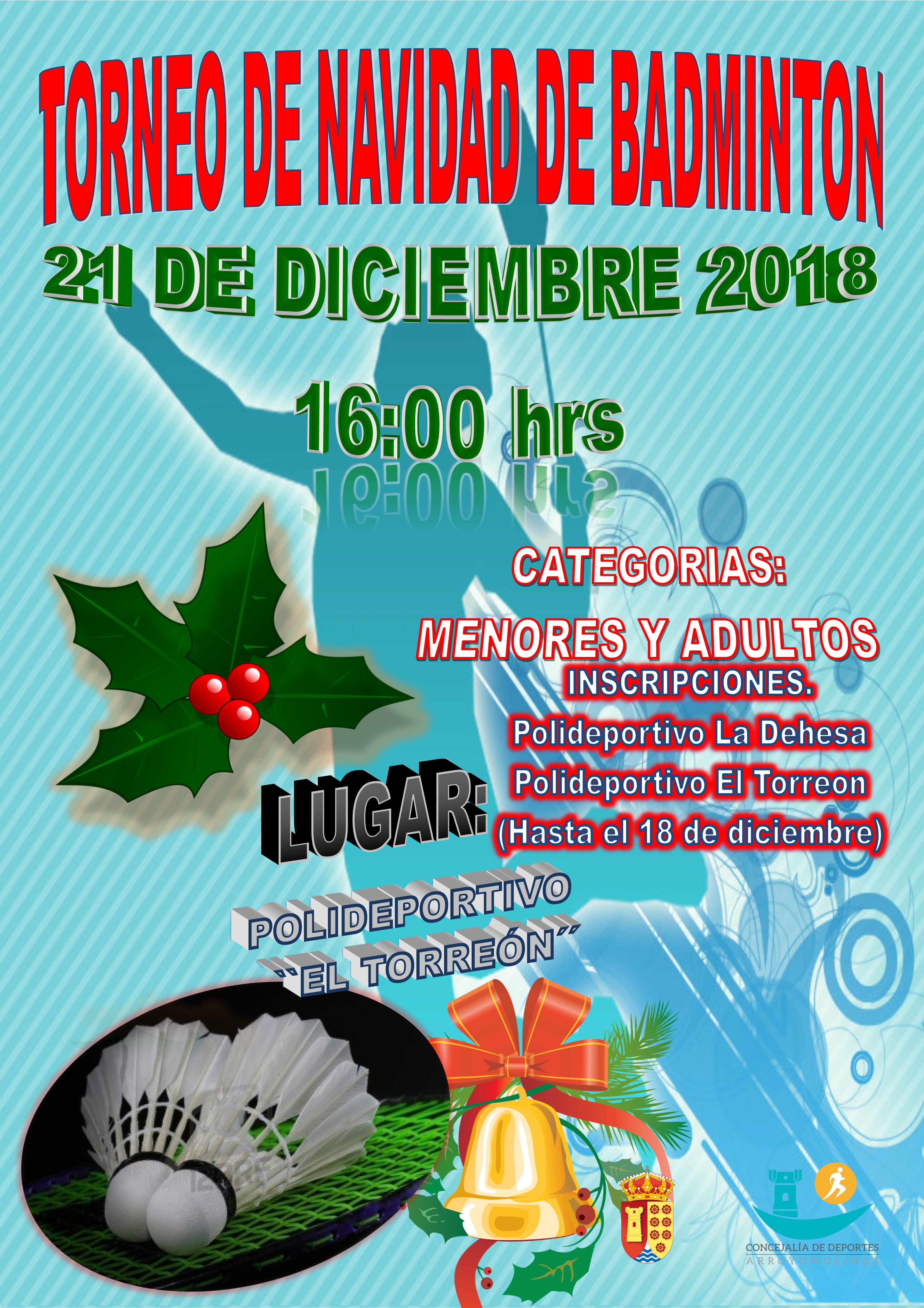 El próximo 21 de diciembre tendremos el “Torneo de Navidad de Bádminton”. Desde las 16:00 horas el Polideportivo “El Torreón” acoge dicho torneo en categorías menores y adultos.