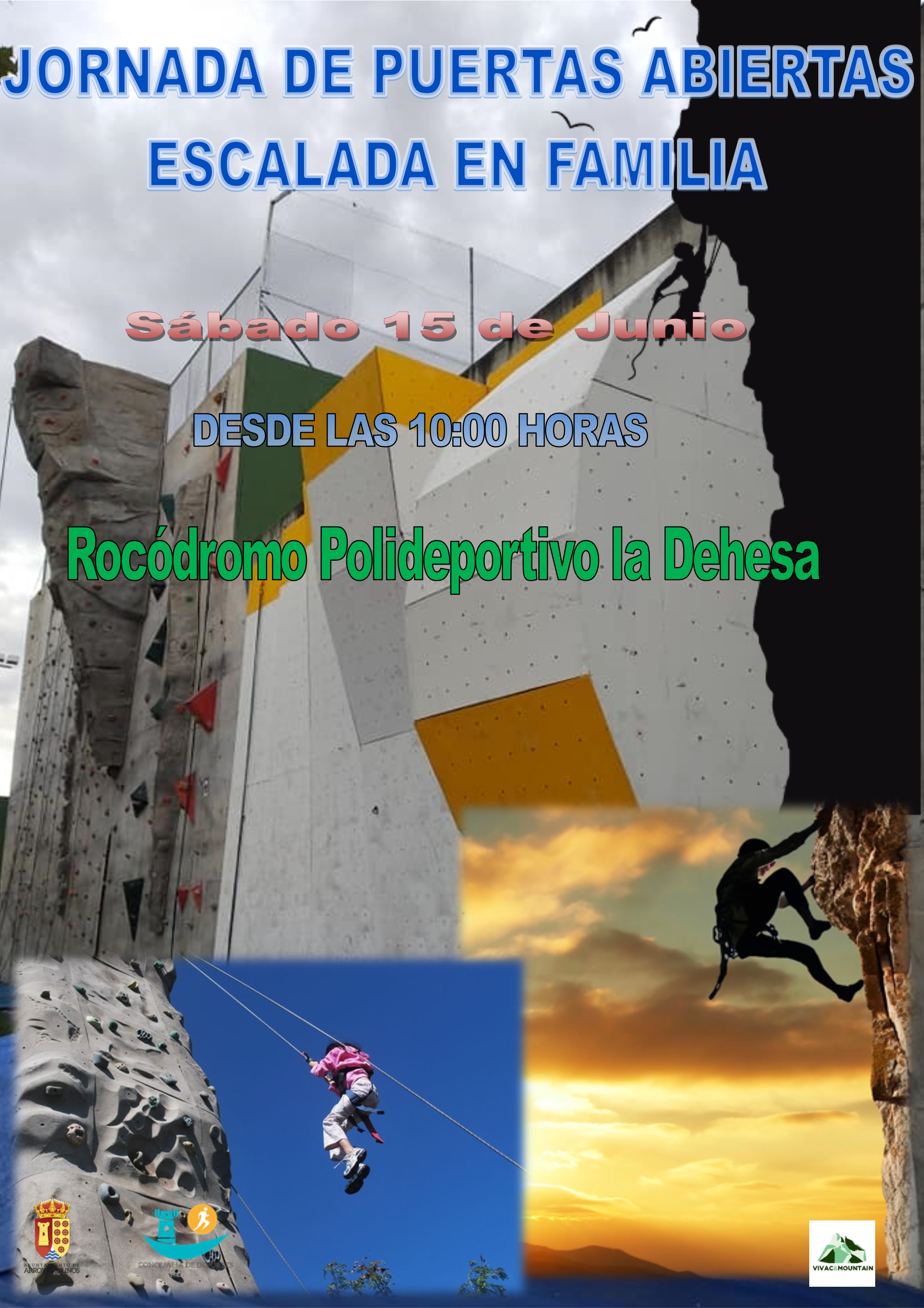 El Club Vivac Mountain de Arroyomolinos organiza una jornada de iniciación y puertas abiertas con motivo de las Prefiestas de Arroyomolinos. Una oportunidad de conocer el deporte de la escalada y dejarnos llevar por el maremágnum de sensaciones y adrenalina que proporciona. Todo esto convierte a la escalada y el montañismo en uno de los diez deportes con más federados en nuestro país.