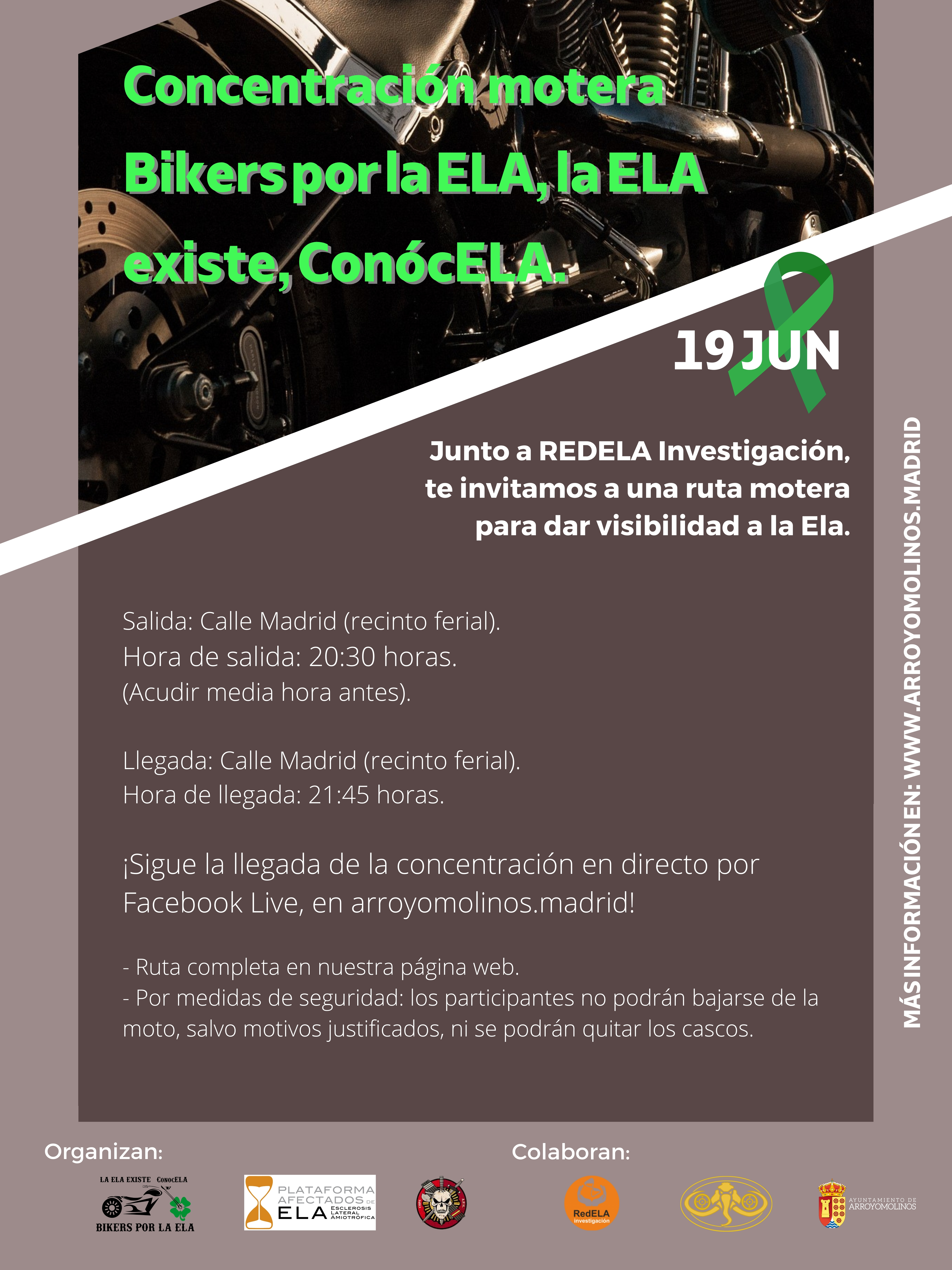 El día 19 de junio vamos a realizar una ruta motera dentro del evento “RED ELA INVESTIGACIÓN PARA DAR VISIBILIDAD A LA ELA EN LA SEMANA DEL DIA INTERNACIONAL DE LA ELA DIA 21 de JUNIO”