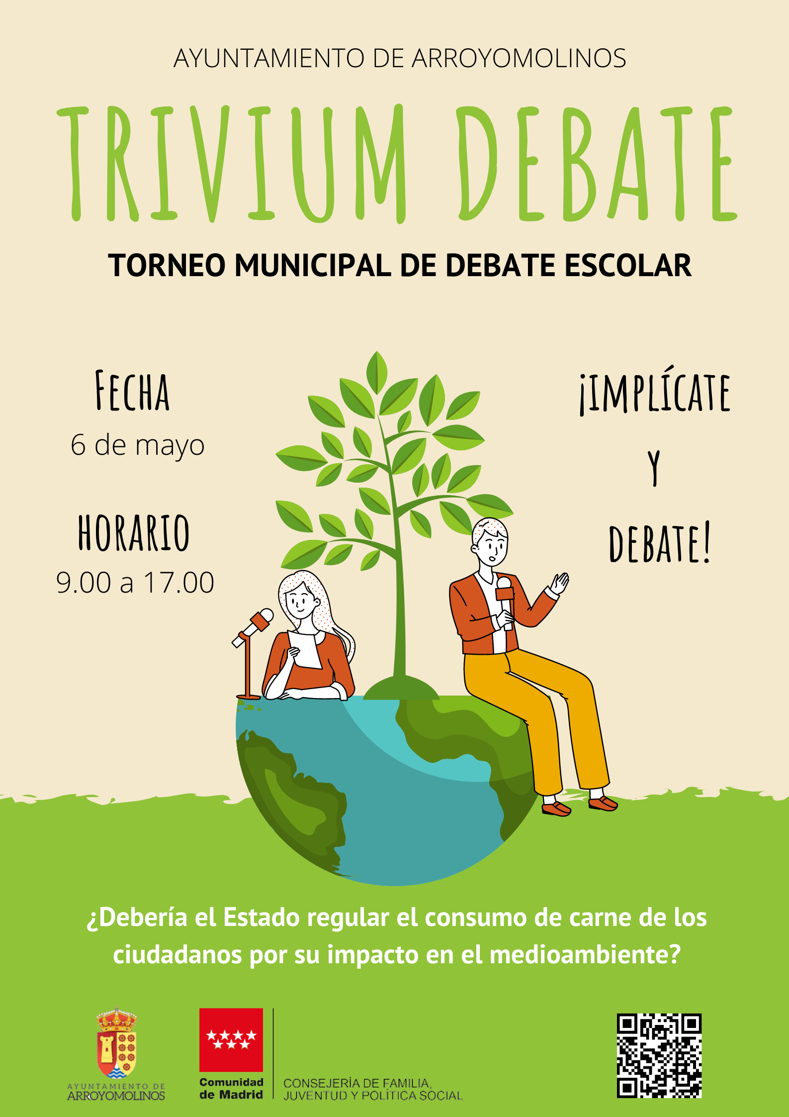 Arroyomolinos acoge el viernes 6 de mayo su II Torneo Municipal de Debate Escolar, un evento promovido por la concejalía de Juventud que nace con el objetivo de proporcionar a nuestros jóvenes herramientas comunicativas para pensar y expresarse con rigor. Está dirigido a alumnos desde 3º de ESO hasta 2º de Bachillerato.