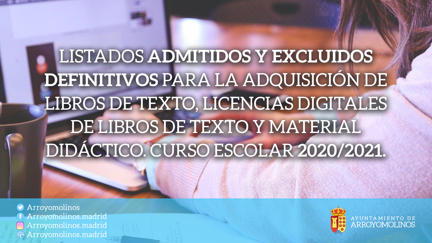 La Concejalía de Educación va a proceder a la publicación de los listados de los solicitantes admitidos y excluidos definitivos para la adquisición de libros de texto, licencias digitales de libros de texto y material didáctico. Curso Escolar 2020/2021.