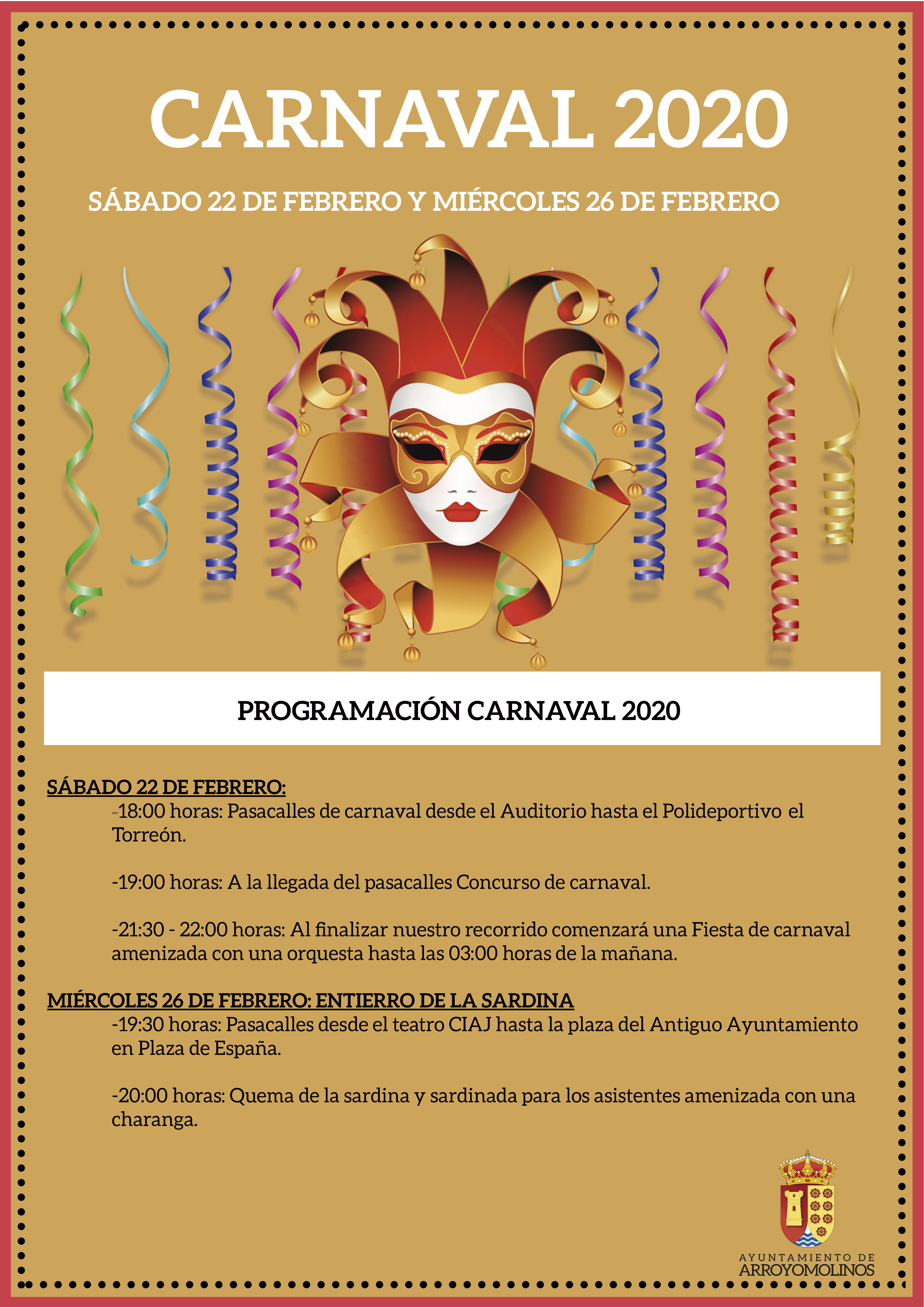 Las calles del centro de Arroyomolinos serán el escenario de la Fiesta de Carnaval que ha preparado el Ayuntamiento de esta localidad. Tras una reunión del Gobierno municipal con las peñas del municipio, en la que éstas expresaron su deseo de que esta celebración regresara al casco antiguo, el Pasacalles y el Concurso de disfraces y comparsas regresa a esta zona.
