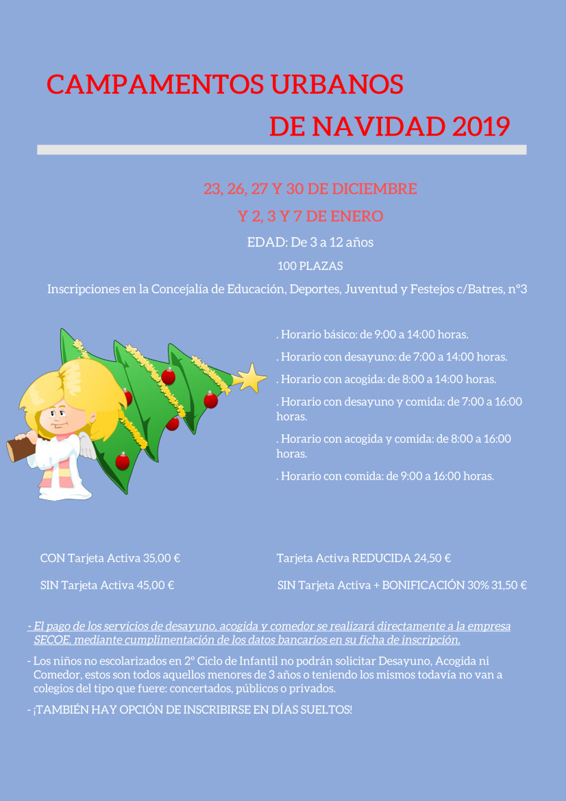 Campamentos para edades están comprendidas de 3 a 12 años.