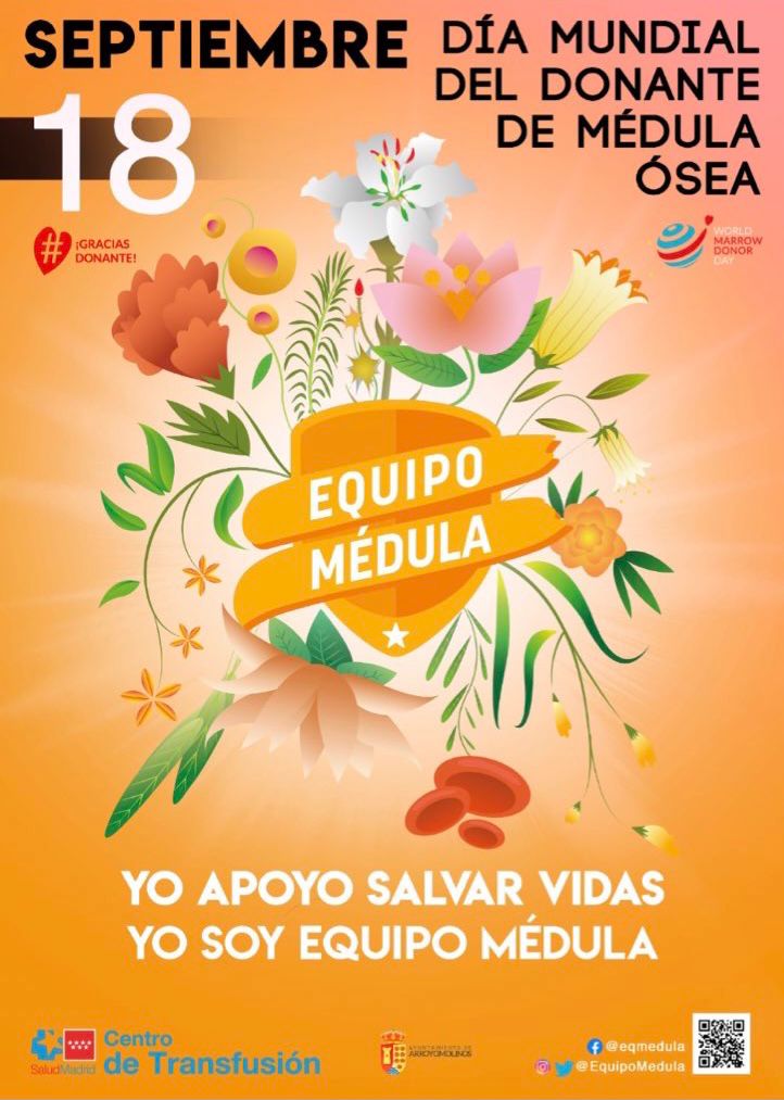 18 de septiembre de 2021.- El Ayuntamiento de Arroyomolinos se suma a la celebración de del Día Mundial del Donante de Médula Ósea colaborando en diversas actividades con el Centro de Transfusión y otras entidades con el fin fomentar la donación de médula. Así, entre otras iniciativas, todos los vecinos del municipio que lo deseen podrán participar en una conferencia informativa online el próximo día 21, así como registrarse como donantes y participar en la extracción voluntaria que tendrá lugar el día 29.
