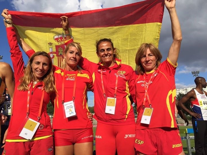 Ángeles Guerra también participó en los dos equipos españoles de relevos del 4×100 y 4×400 W45, que consiguieron unos excelentes quinto y tercer puesto respectivamente, y de nuevo otra medalla de bronce y otro récord de España en la especialidad más larga.