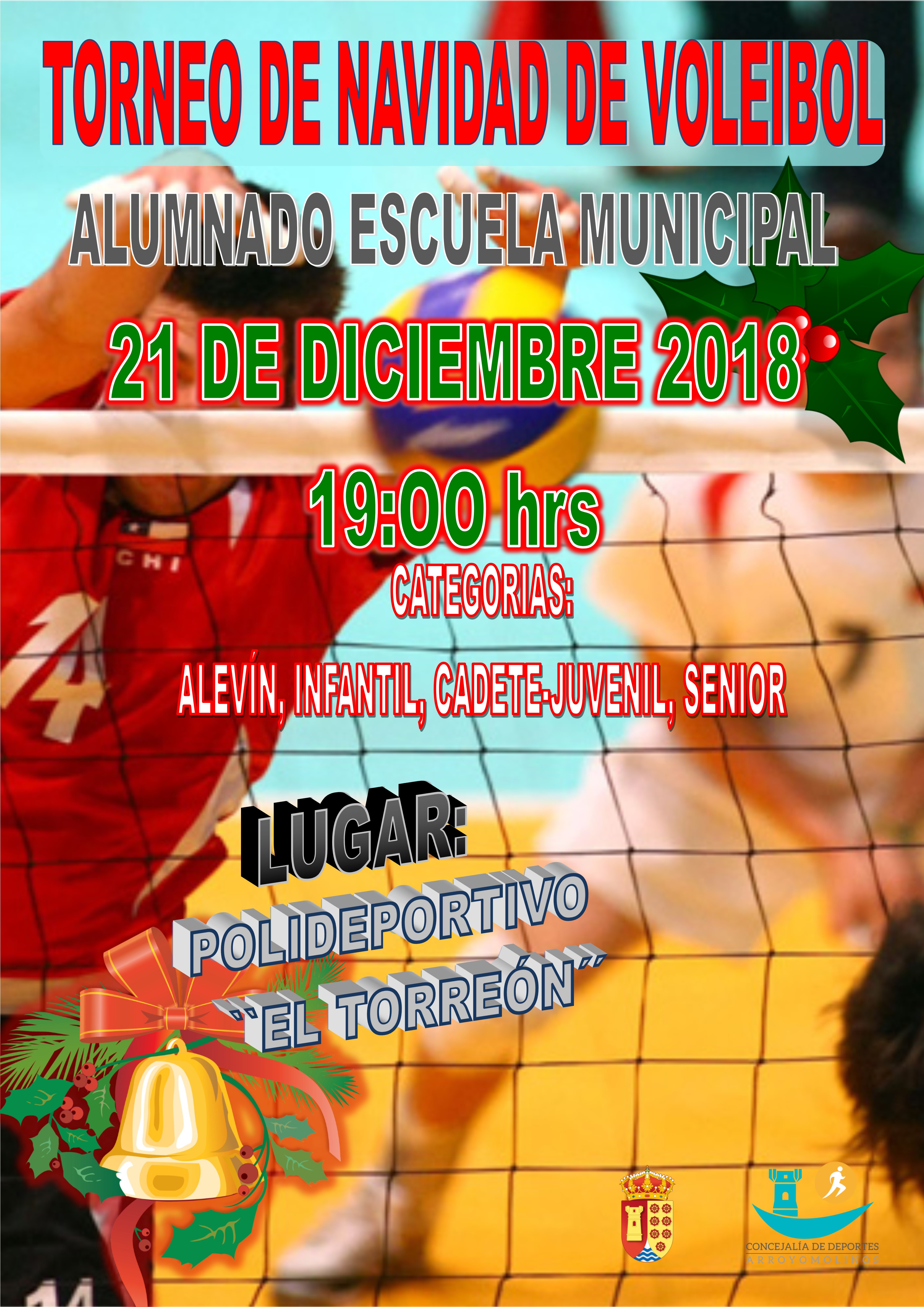 El Polideportivo El Torreón acogerá este próximo viernes el Torneo de Navidad de Voleibol en el que participa la Escuela Municipal de Arroyomolinos. El Voleibol es uno de los deportes de equipo más practicados por nuestros jóvenes en centros educativos y que permite una amplia formación y desarrollo de la psicomotricidad. Un deporte emocionante y dinámico que vivirá una jornada especial en nuestra ciudad el próximo 21 de diciembre.