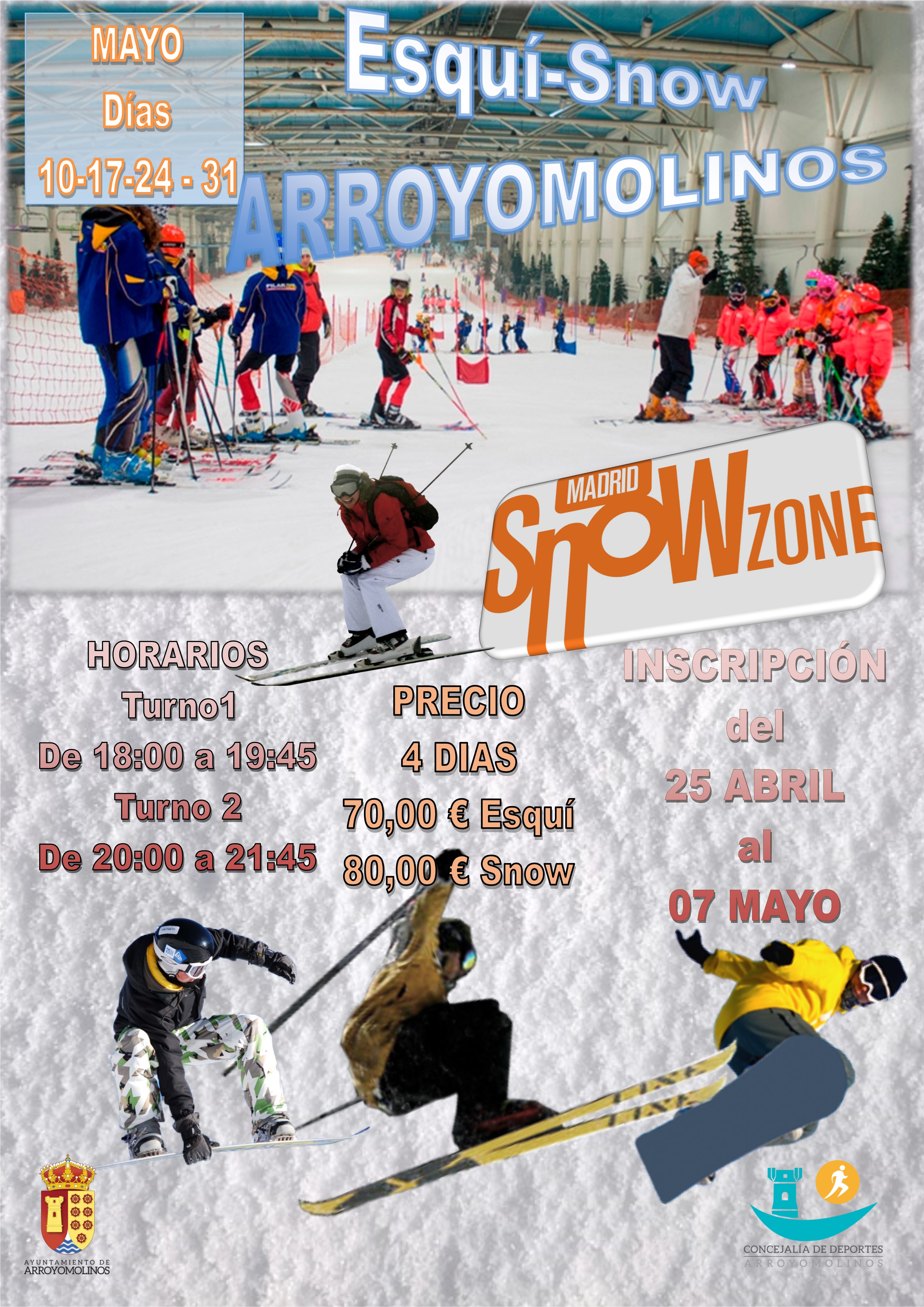Gracias al convenio entre SnowZone Madrid Xanadú y el Ayuntamiento de Arroyomolinos, vuelven a ofertarse nuevas clases de esquí y snow a precios especiales para los vecinos del municipio y que darán comienzo el próximo 10 de mayo. En total se ofertarán 100 plazas para vecinos de Arroyomolinos en dos turnos.
