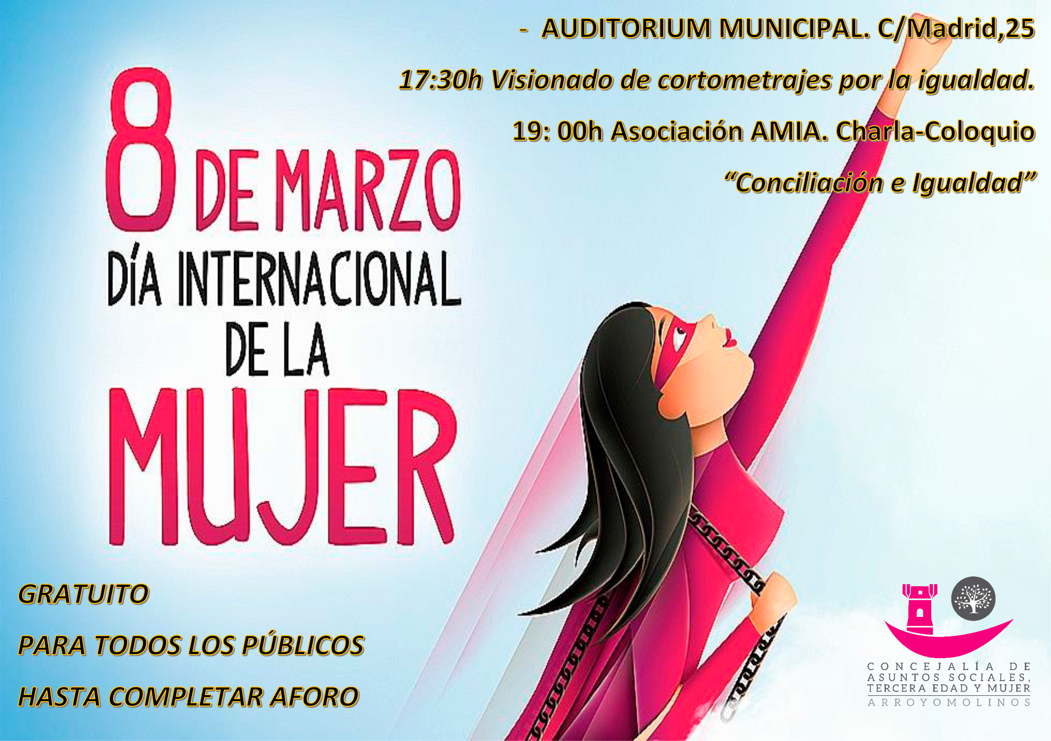 Con motivo de la celebración del Día Internacional de la Mujer, el Ayuntamiento de Arroyomolinos, a través de la Concejalía de Asuntos Sociales, Tercera Edad y Mujer ha organizado una serie de actividades del interés de todos los vecinos.