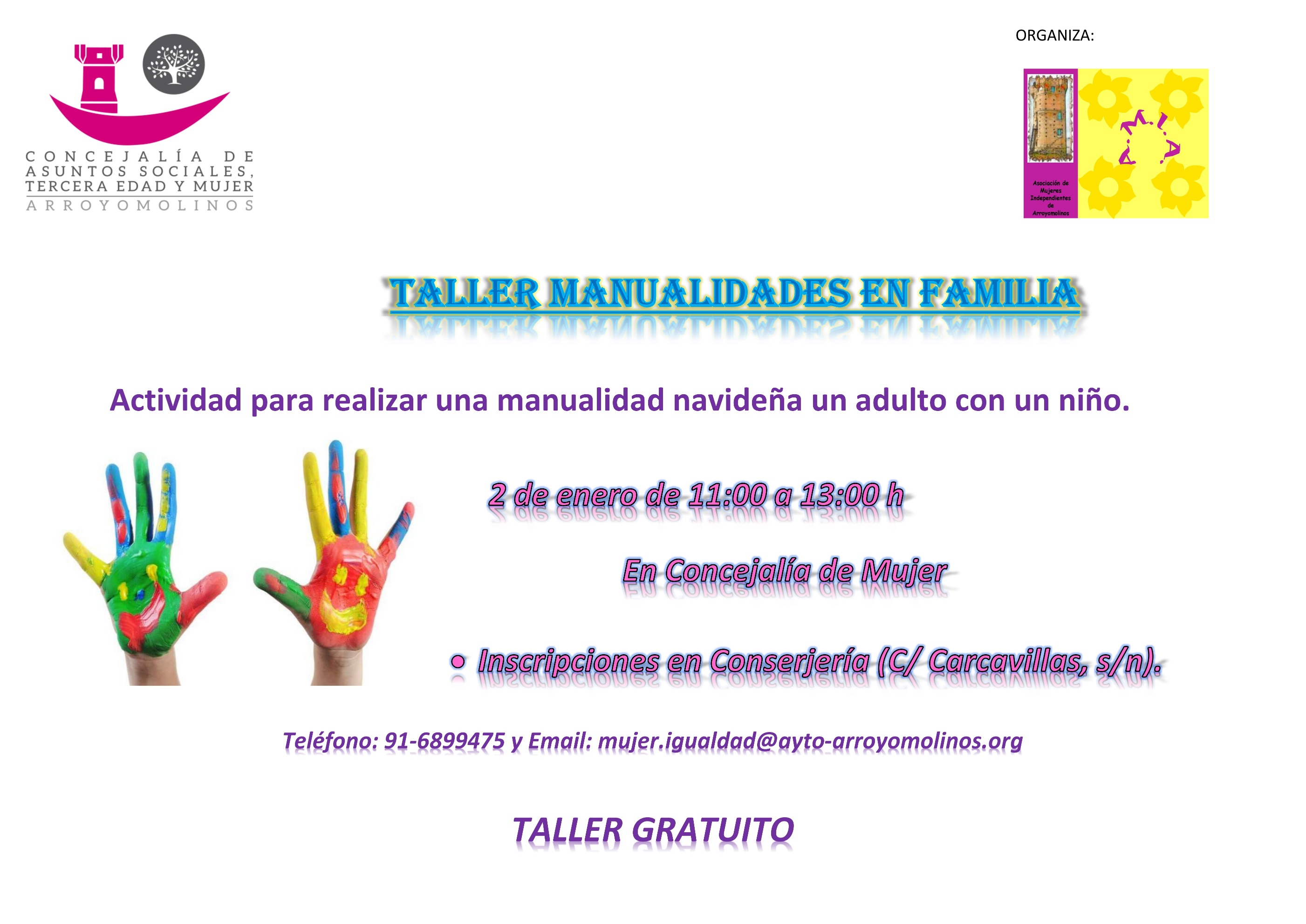 AMIA organiza un taller de manualidades en familia. La cita será el próximo 2 de enero de 11:00 a 13:00 horas en la Concejalía de Mujer de Arroyomolinos ubicada en la calle Carcavillas s/n. El taller esa ideado para que los más pequeños hagan sus manualidades acompañados de sus padres.