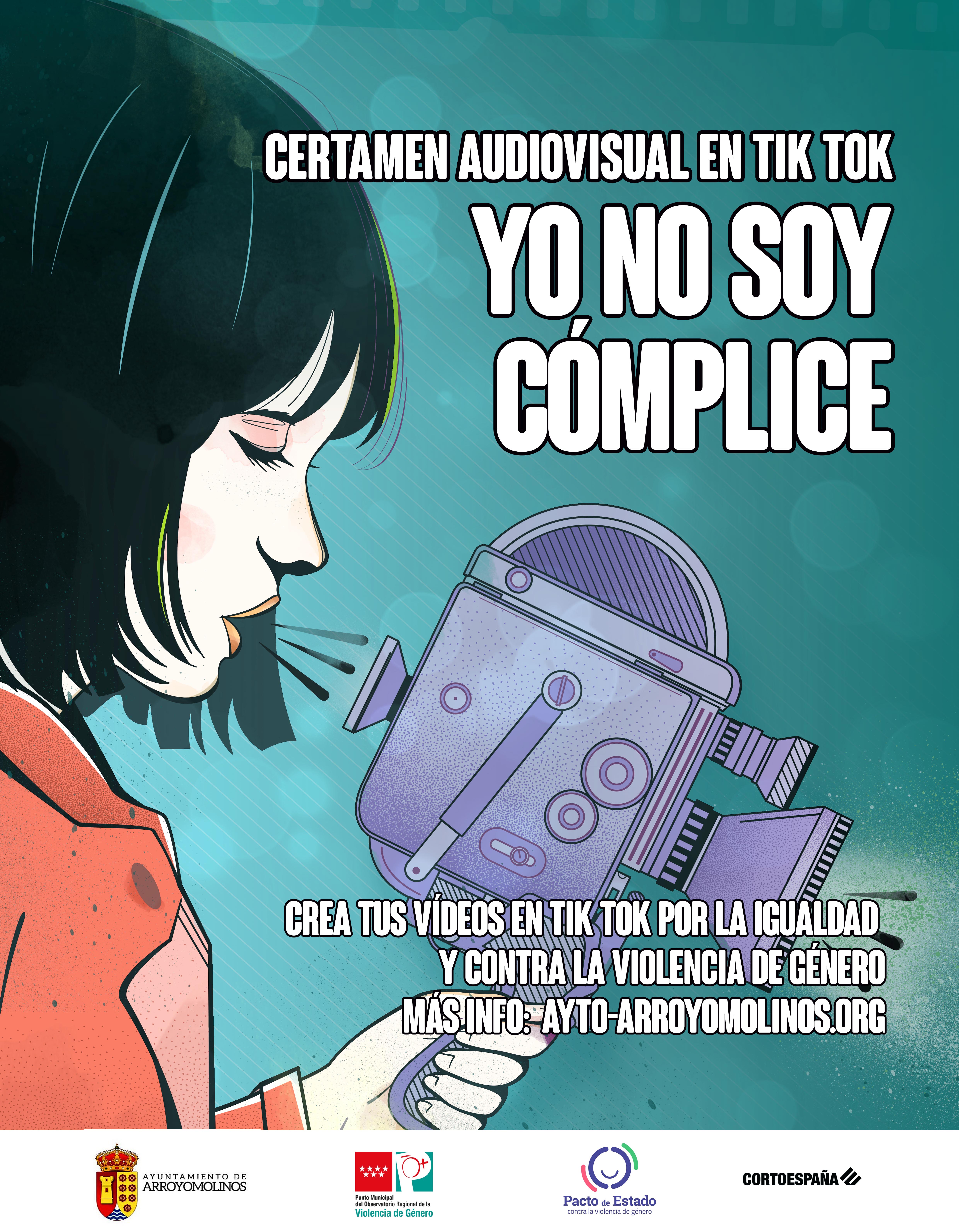 El Ayuntamiento de Arroyomolinos presenta el concurso “Yo no soy cómplice”, que, alrededor del “hashtag” #YoNoSoyComplice recopilará vídeos en Tik Tok que conciencien sobre la igualdad de género, las relaciones afectivas sanas entre mujeres y hombres, y el rechazo y la prevención de la violencia de género.