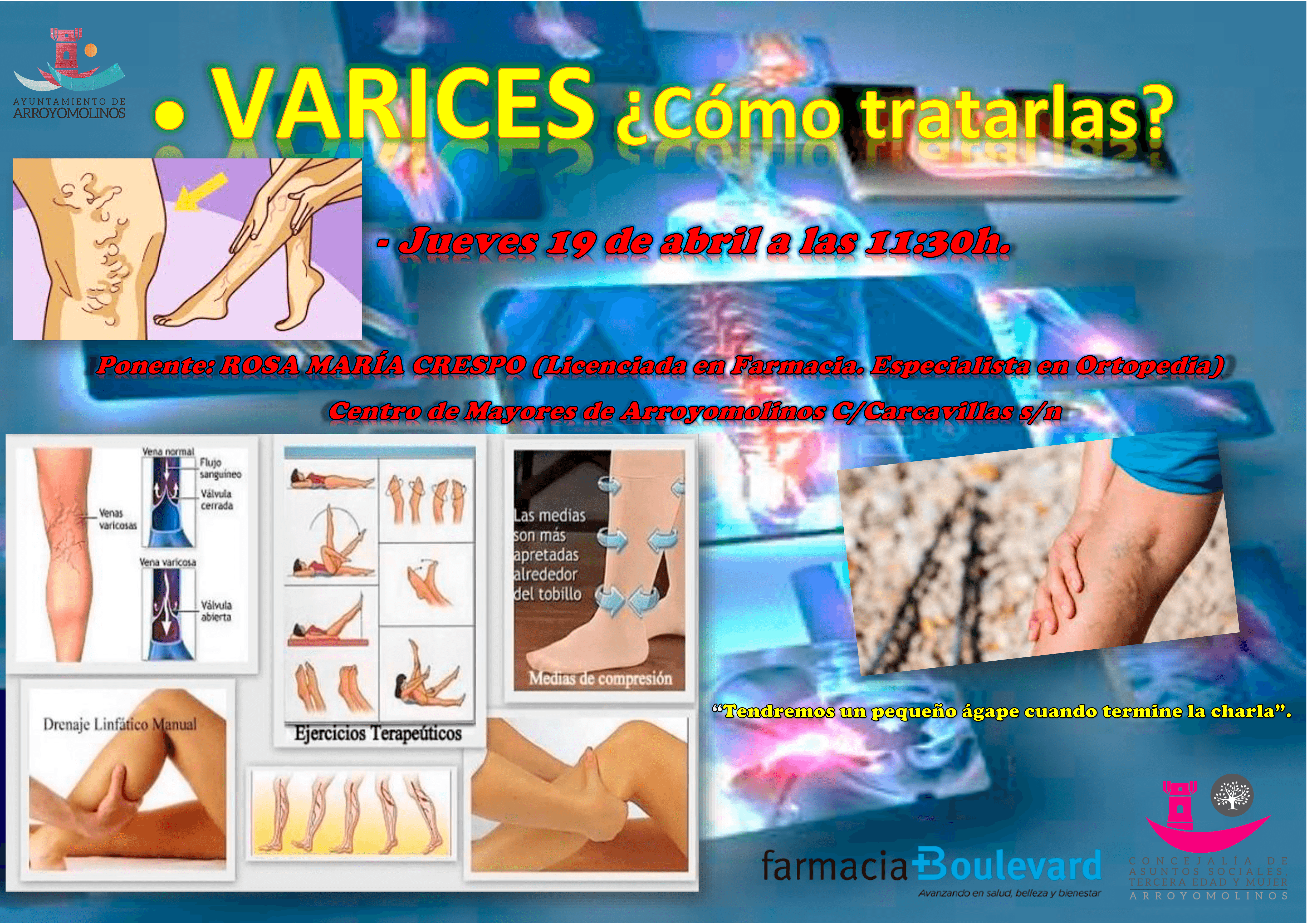 La ponencia corre a cargo de Rosa María Crespo Licenciada en Farmacia y especialista en Ortopedia. Un evento organizado por la Concejalía de Asuntos Sociales, Tercera Edad y Mujer de Arroyomolinos y la Farmacia Boulevard. Se celebrará el jueves 19 de abril a las 11:30 de la mañana en el Centro de Mayores de Arroyomolinos que se encuentra en calle Carcavillas s/n