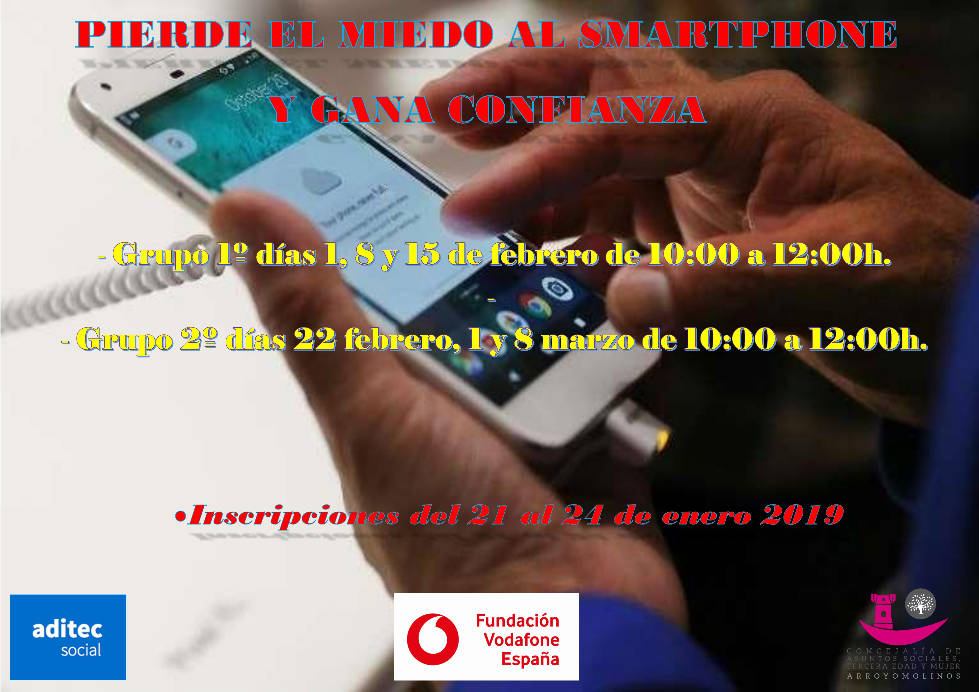 La Concejalía de Tercera Edad de Arroyomolinos junto con la Fundación Vodafone impartirán talleres para perder el miedo al smartphone y ganar confianza en su uso diario. Unos talleres dirigidos a los mayores de Arroyomolinos y que se distribuirán en dos grupos para optimizar el aprendizaje y la formación.