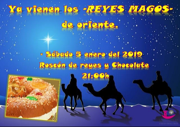 Desde las 21:00 horas los mayores de Arroyomolinos celebrarán la llegada de Melchor, Gaspar y Baltasar con roscón de reyes y chocolate y baile. Una ocasión para divertirse en la noche más mágica del año.