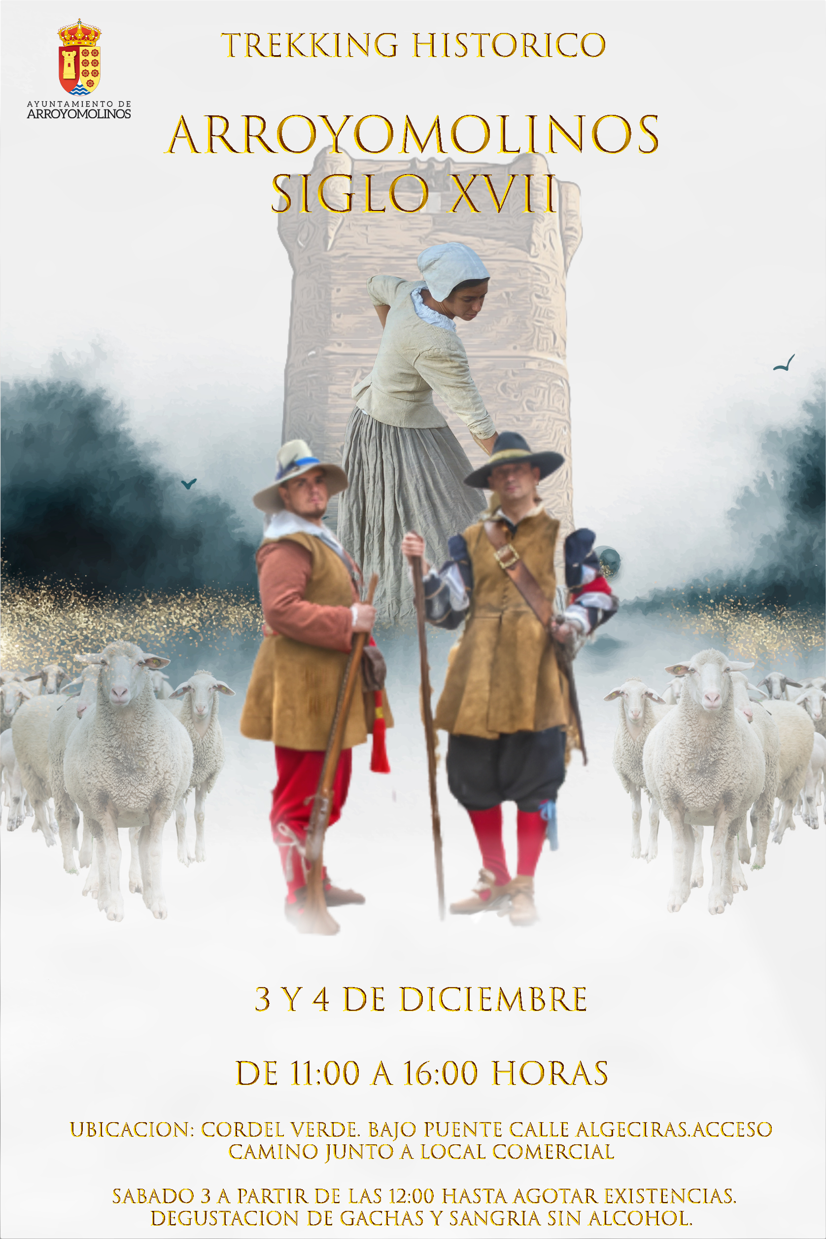 En concreto, los días 3 y 4 de diciembre la Vía Pecuaria de Arroyomolinos viajará al siglo XVII con un trekking donde vecinos y visitantes podrán recorrer la vida cotidiana de nuestro municipio en 1634. Esta gran puesta en escena permitirá conocer las diferentes profesiones de un pueblo cuyo principal motor económico eran sus molinos harineros, que funcionaban para todos los pueblos de la comarca y destacar la evolución que ha tenido nuestra localidad a lo largo de la historia.