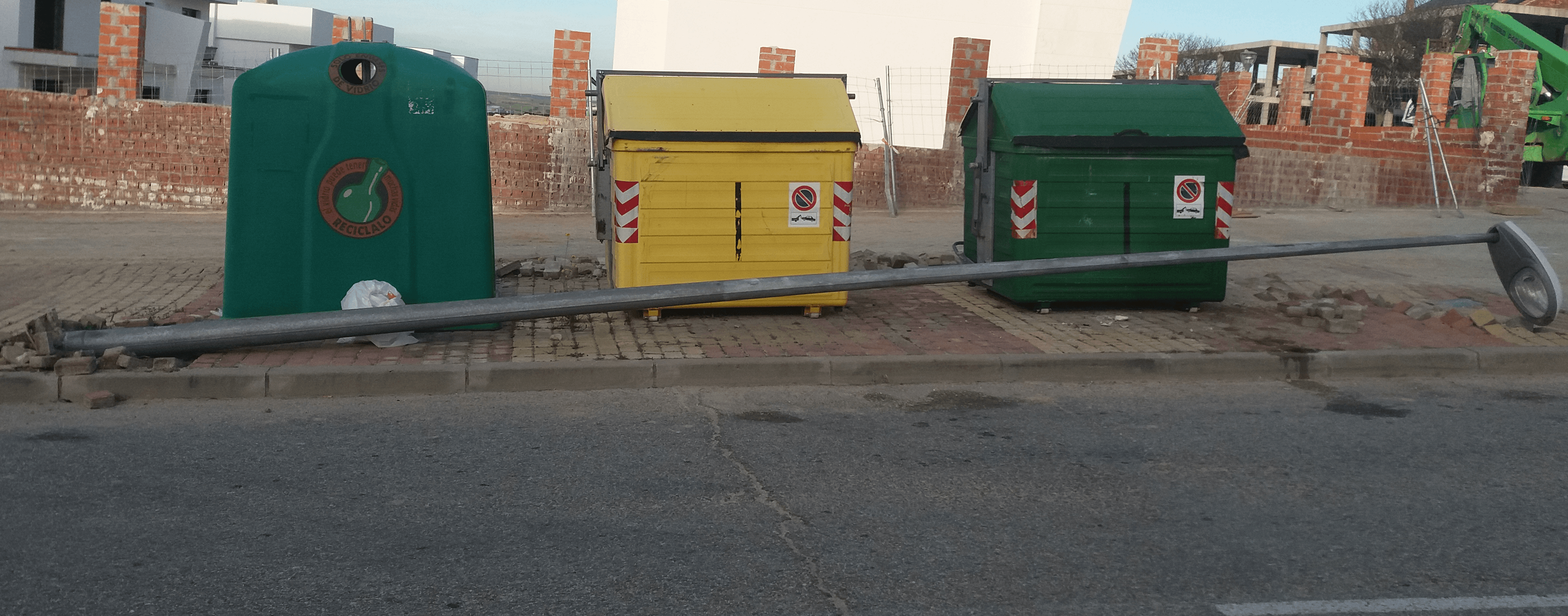 En los últimos meses y desde la Concejalía de Servicios Generales se ha tenido que proceder a la reparación o sustitución de varias farolas de nuestra localidad. Hasta 65 farolas han sido seriamente dañadas por actos vandálicos como pedradas, robo de cable o fuertes golpes con vehículos en los últimos meses. En algunas ocasiones la farola ha acabado en el suelo literalmente. En algunos casos los daños provocados en la estructura han sido tan severos que han provocado problemas en el cableado de esta.