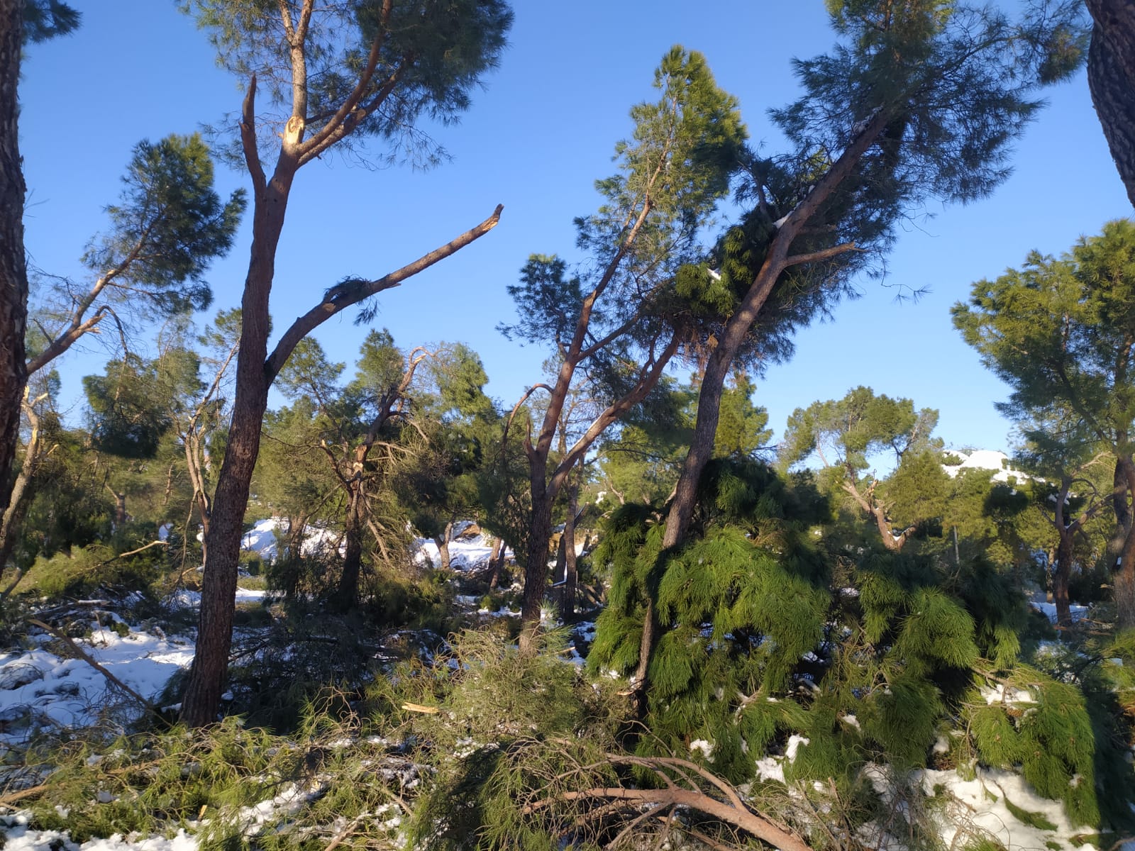 El paso del temporal de nieve Filomena dejó un elevado número de daños y desperfectos en bienes y vías públicas, así como en nuestros espacios naturales, dañándolos de manera de severa, que aún hoy son visibles.