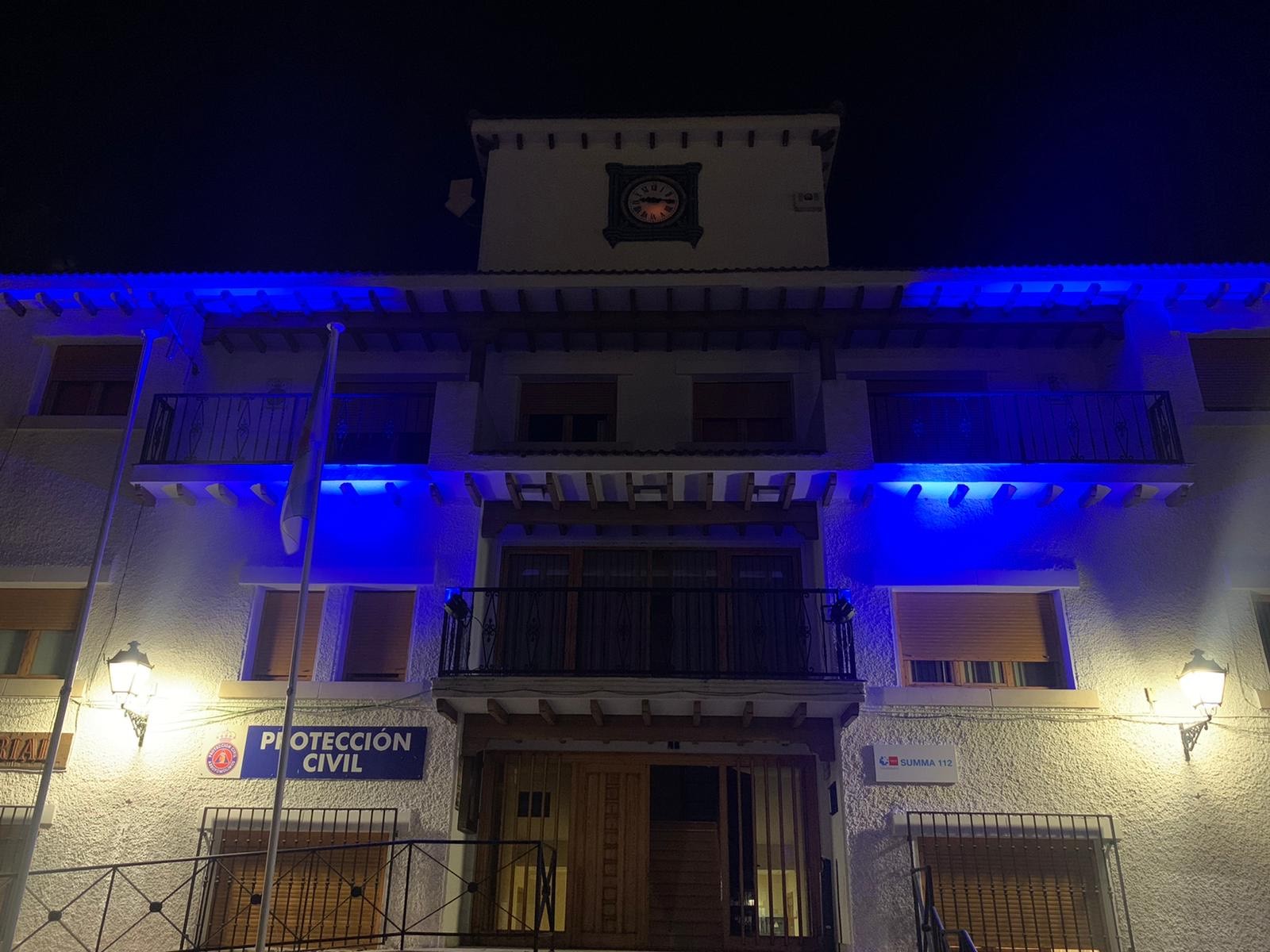 El color azul iluminó anoche la fachada principal del antiguo Ayuntamiento, en la Plaza de España, y algunas fuentes de la localidad con motivo del Día Mundial de la Dislexia.