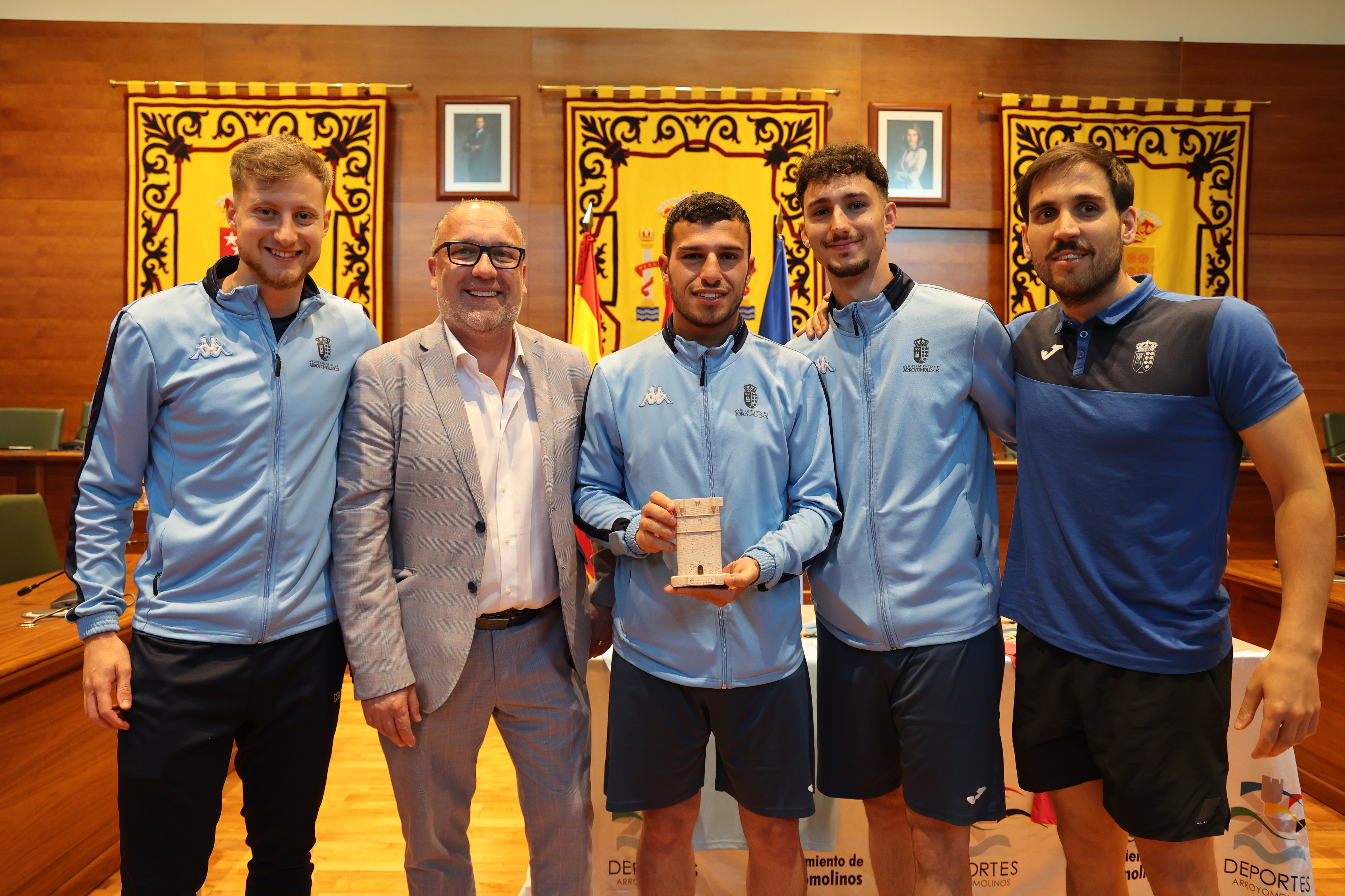 En recuerdo de esta gesta deportiva, los jugadores han obsequiado a Quiroga y a la edil de Deporte con una camiseta del equipo firmada por toda la plantilla y el alcalde, por su parte, ha entregado al capitán Sergio Parra una figura elaborada con polvo de alabastro y que representa el torreón de Arroyomolinos, considerado como el símbolo arquitectónico del municipio.