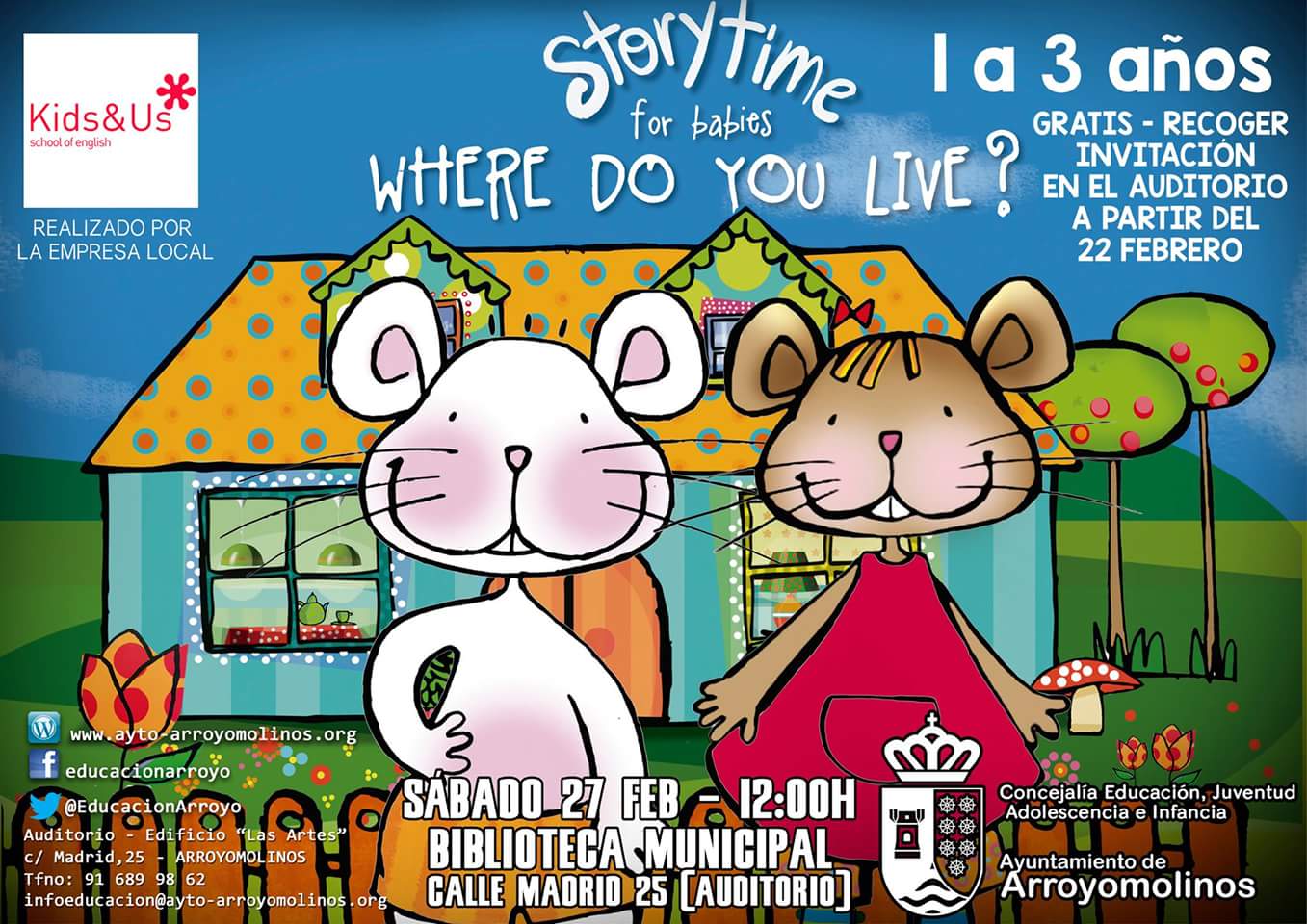 El sábado 27 de febrero a partir de las 12:00h. de la mañana en la Biblioteca Municipal, vuelve Storytime for babies con una nueva sesión especialmente diseñada para los niños de 1 a 3 años: Where do you live?