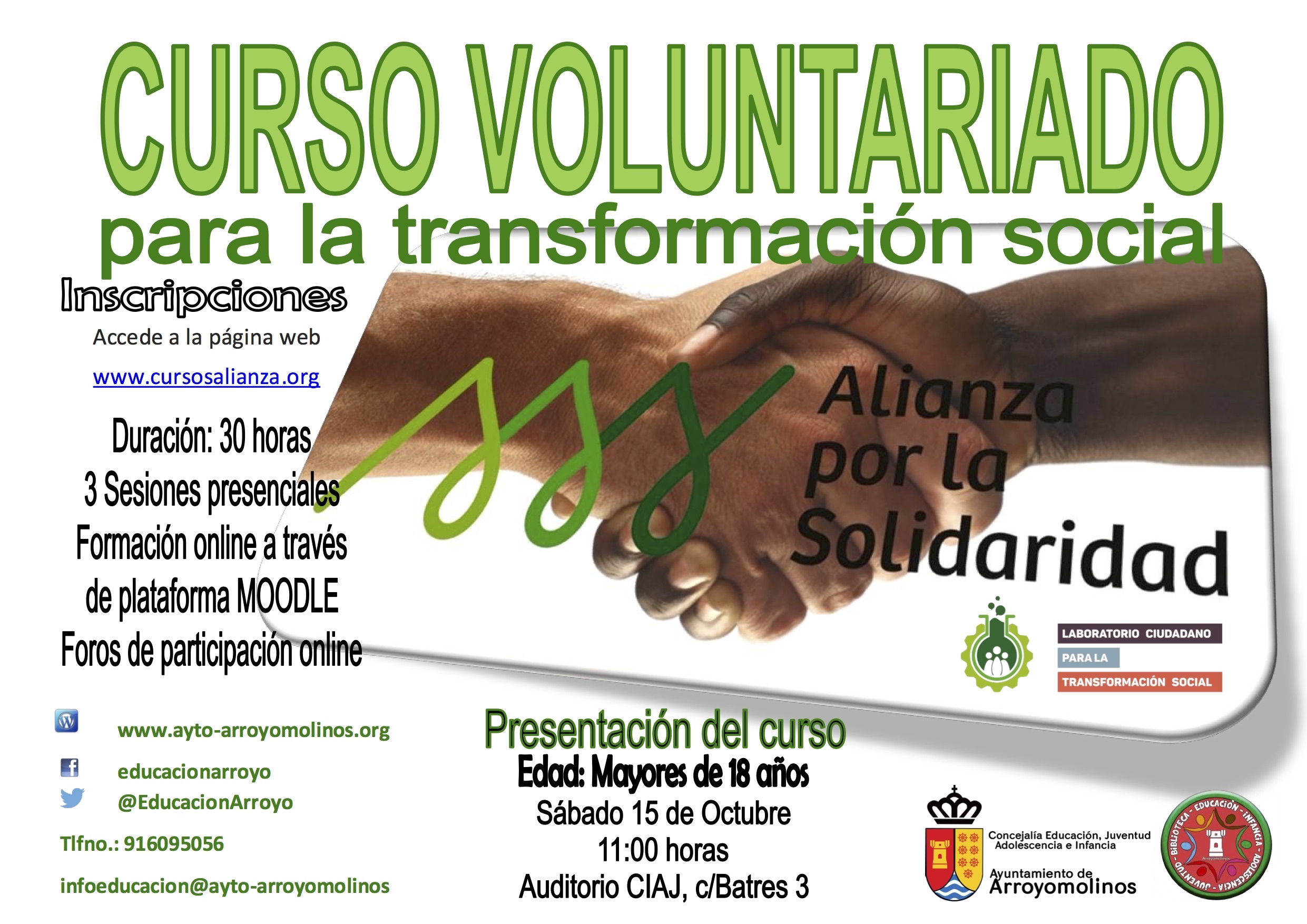 Desde la Concejalía de Educación, Infancia, Adolescencia y Juventud creemos que es necesaria la implicación de nuestros jóvenes en la solución de las problemáticas sociales de nuestro entorno. Para nosotros es importante contar con personas activas, concienciadas e implicadas que quieran aportar de forma desinteresada parte de su tiempo para mejorar nuestra sociedad. Nos gustaría disfrutar de una generación de personas involucradas en los cambios sociales, y que sean cada vez más conscientes de la fuerza de las acciones personales para transformar la realidad. Por esta razón ponemos en marcha el Laboratorio Ciudadano para la Transformación Social, en colaboración con Alianza por la Solidaridad.