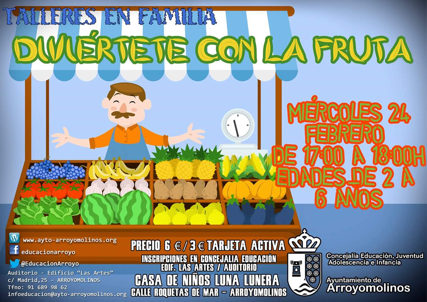 Si estás interesado en participar con tus hijos, puedes inscribirte en la Concejalía de Educación, en el Auditorio Municipal. El precio de los talleres será de 6 euros, 3 si dispones de la Tarjeta Activa.